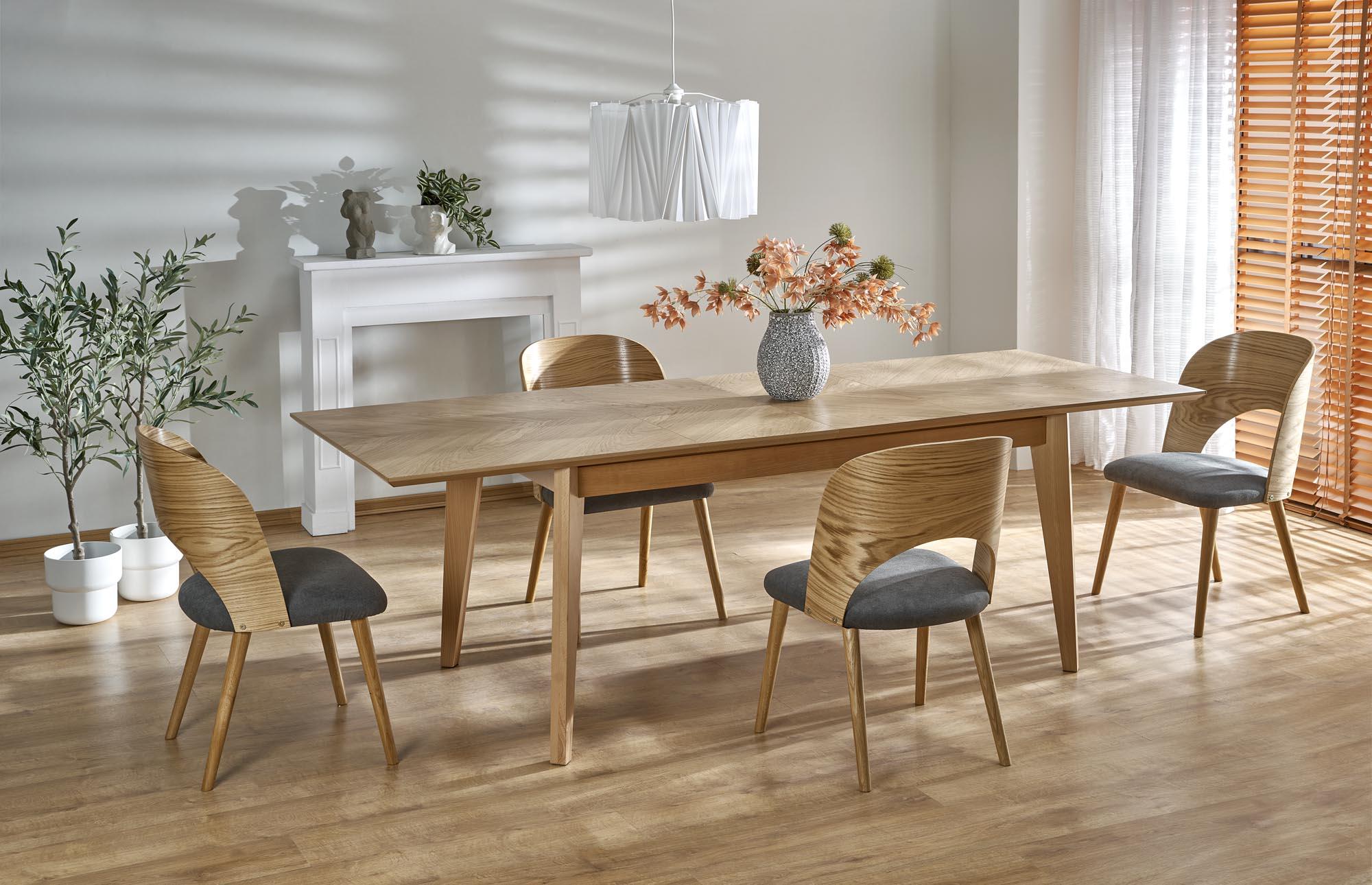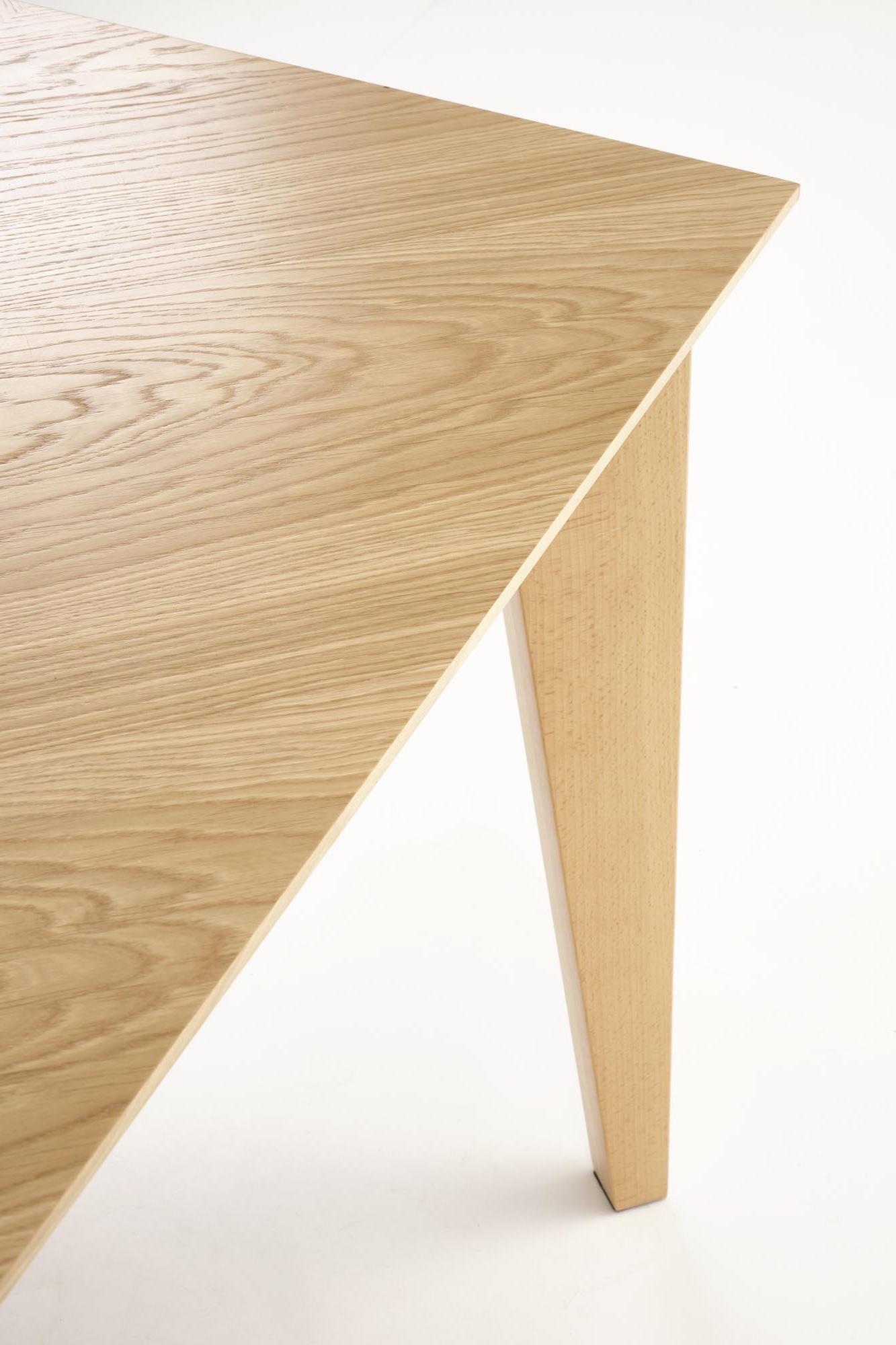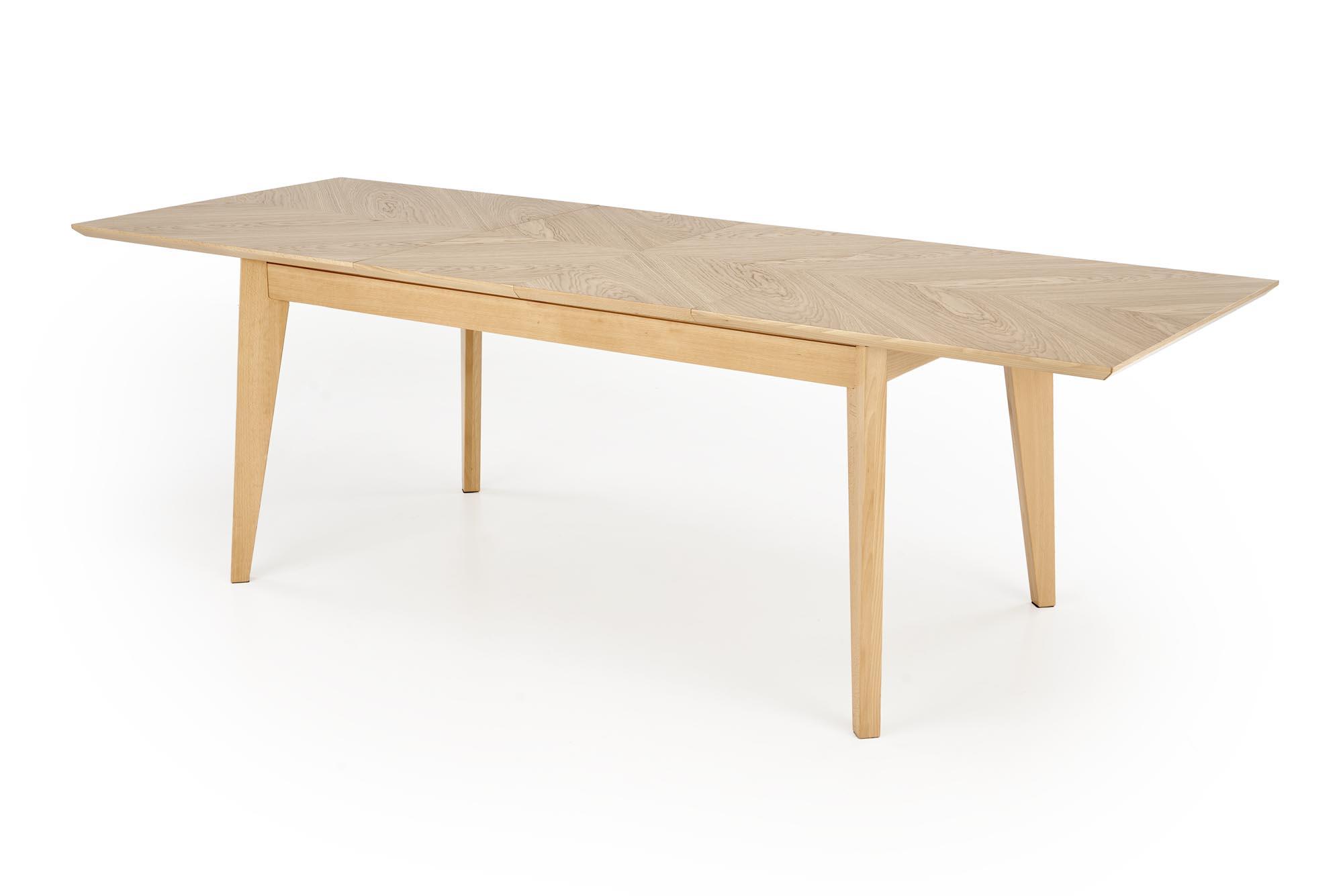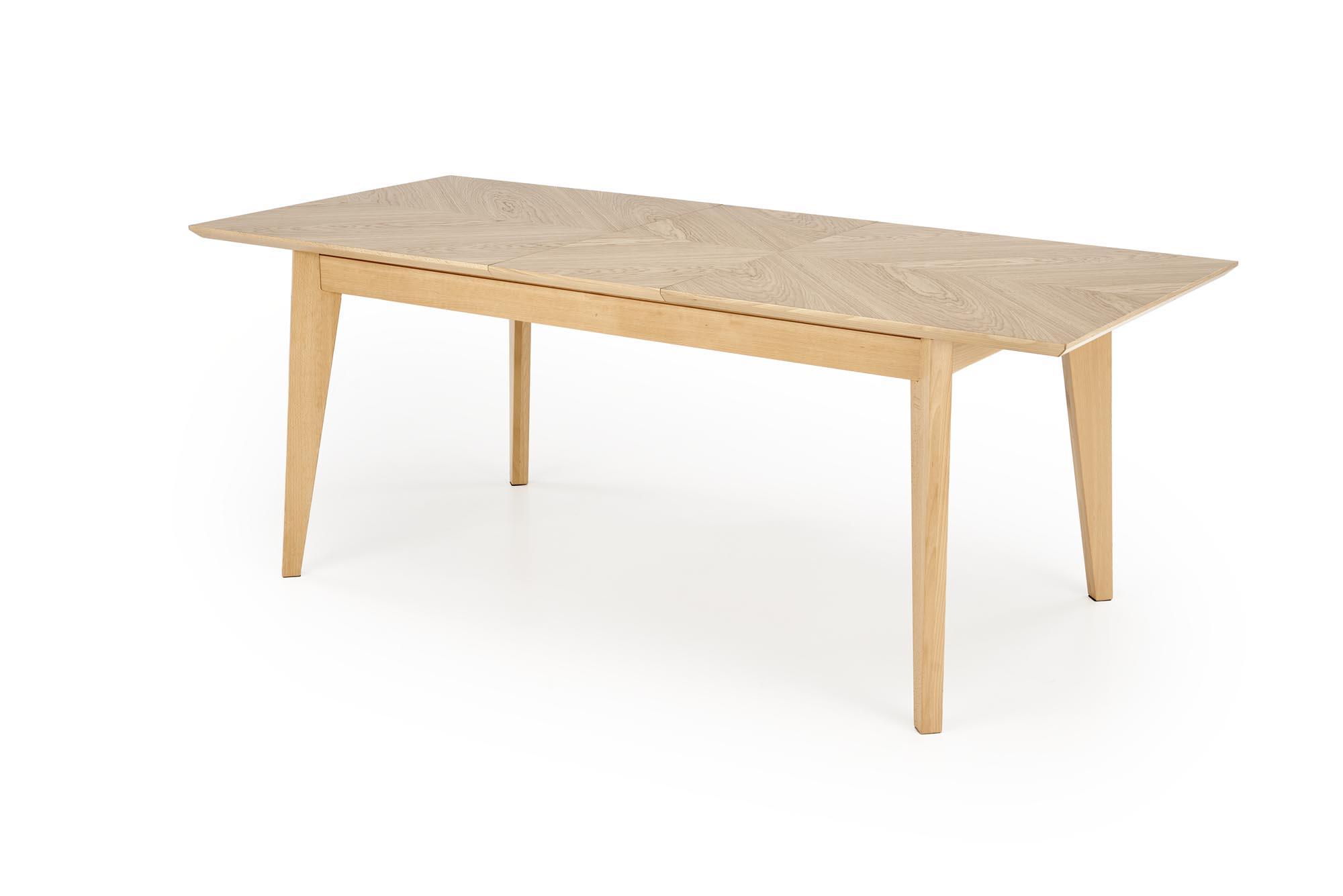 Stół wykonano z materiału: płyta meblowa + okleina naturalana - dębowa / drewno lite - bukowe, kolor blat - naturalny, nogi - naturalny