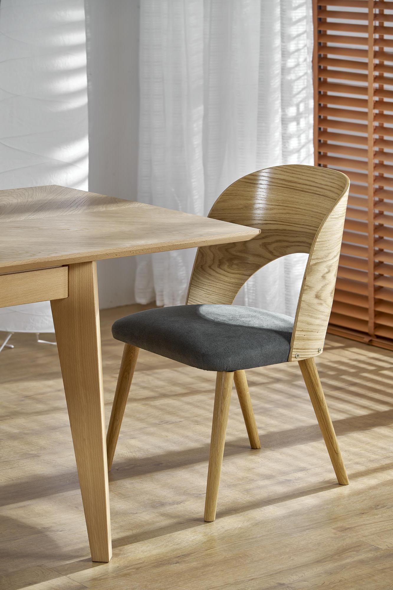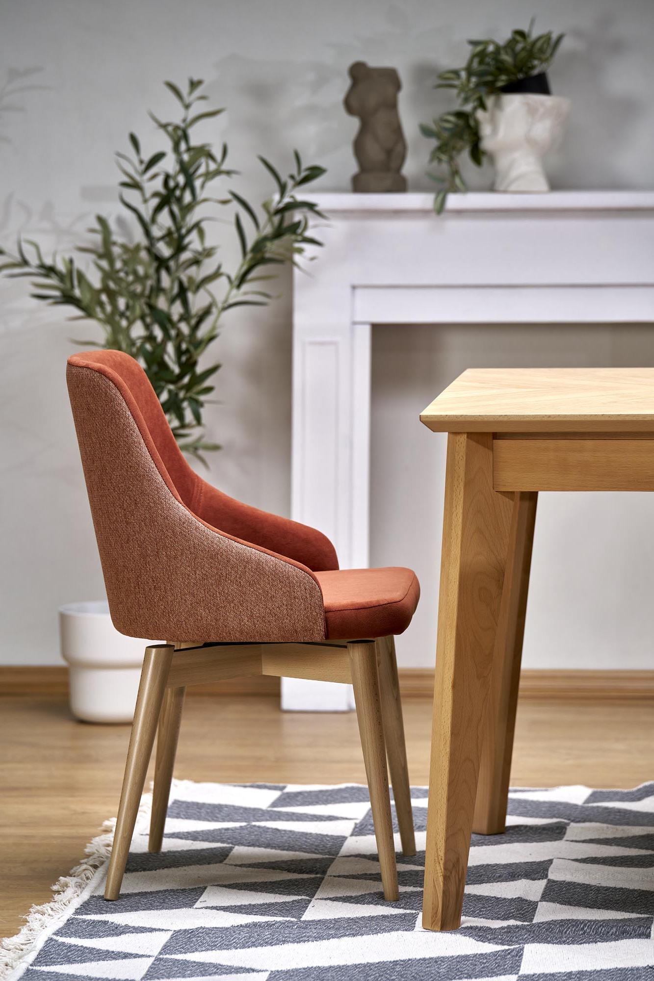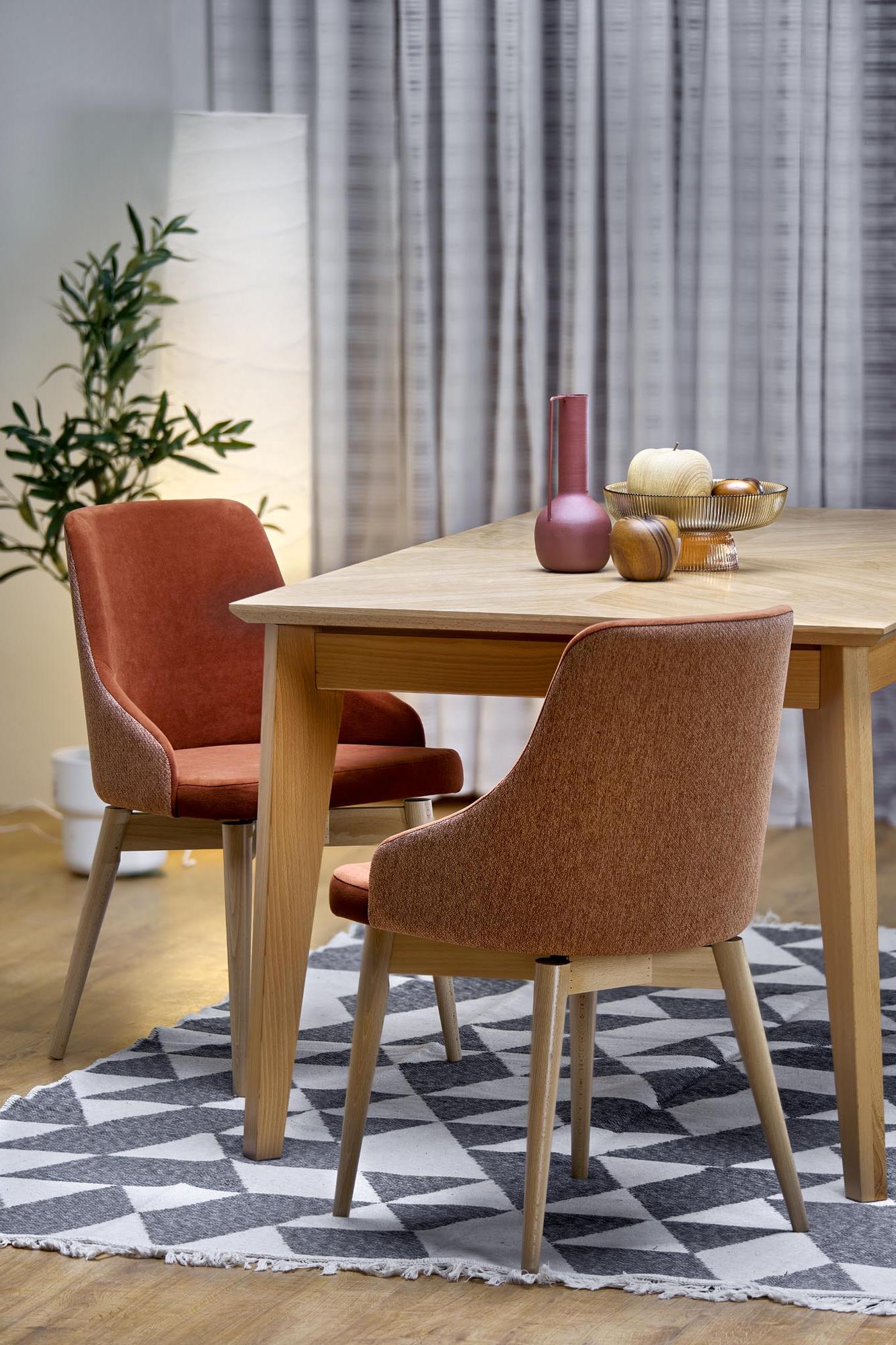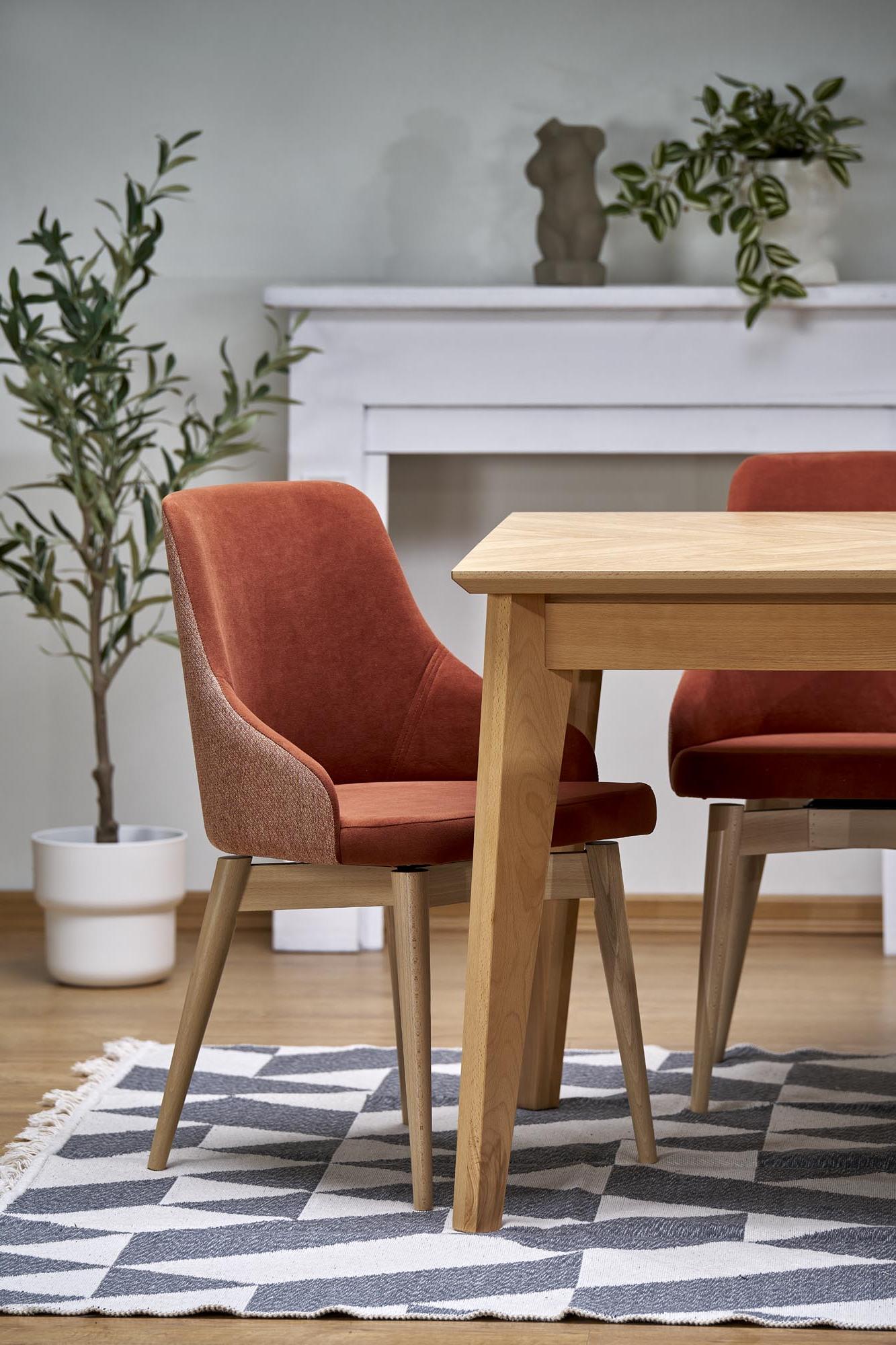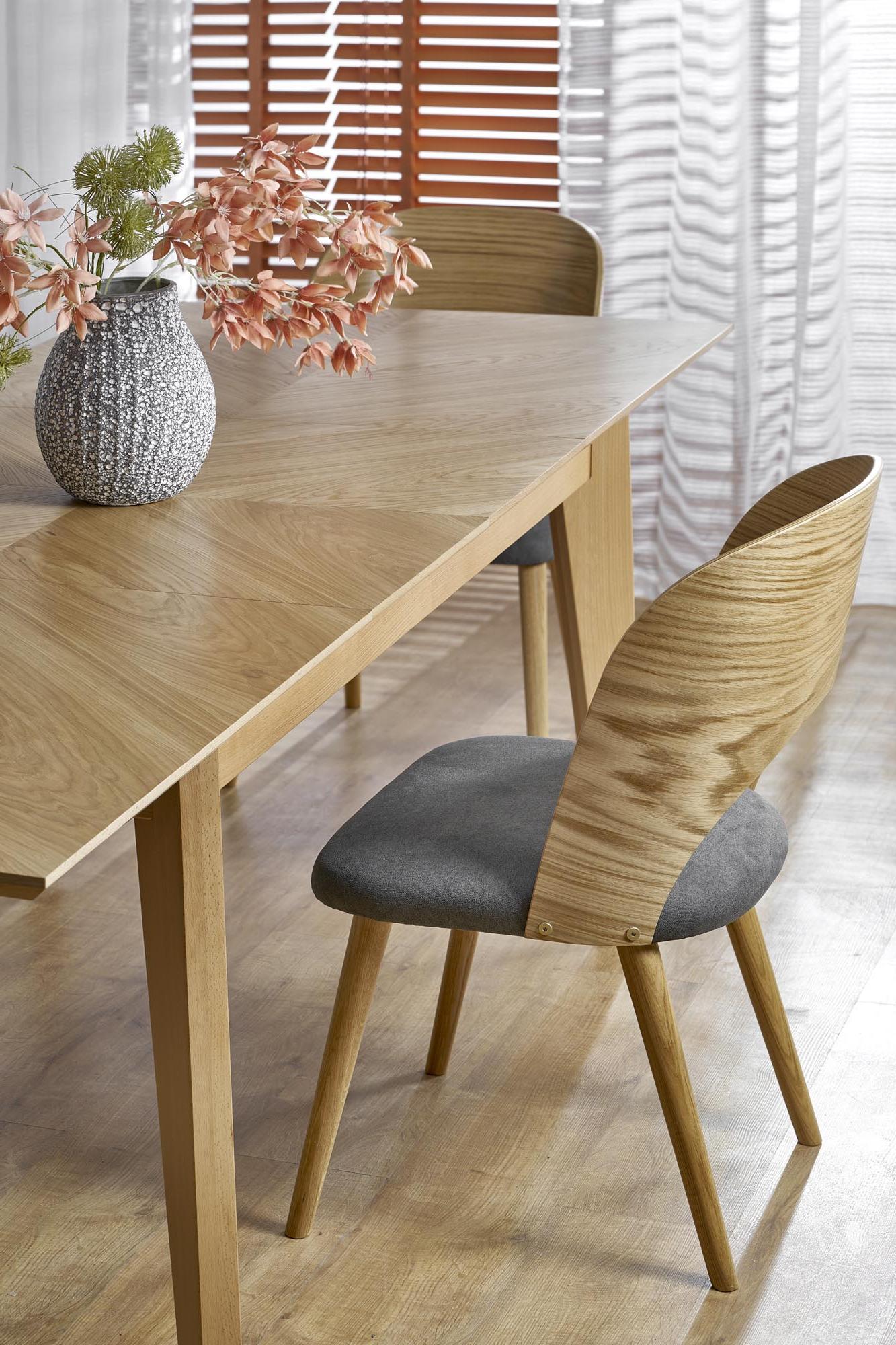 Stół wykonano z materiału: płyta meblowa + okleina naturalana - dębowa / drewno lite - bukowe, kolor blat - naturalny, nogi - naturalny