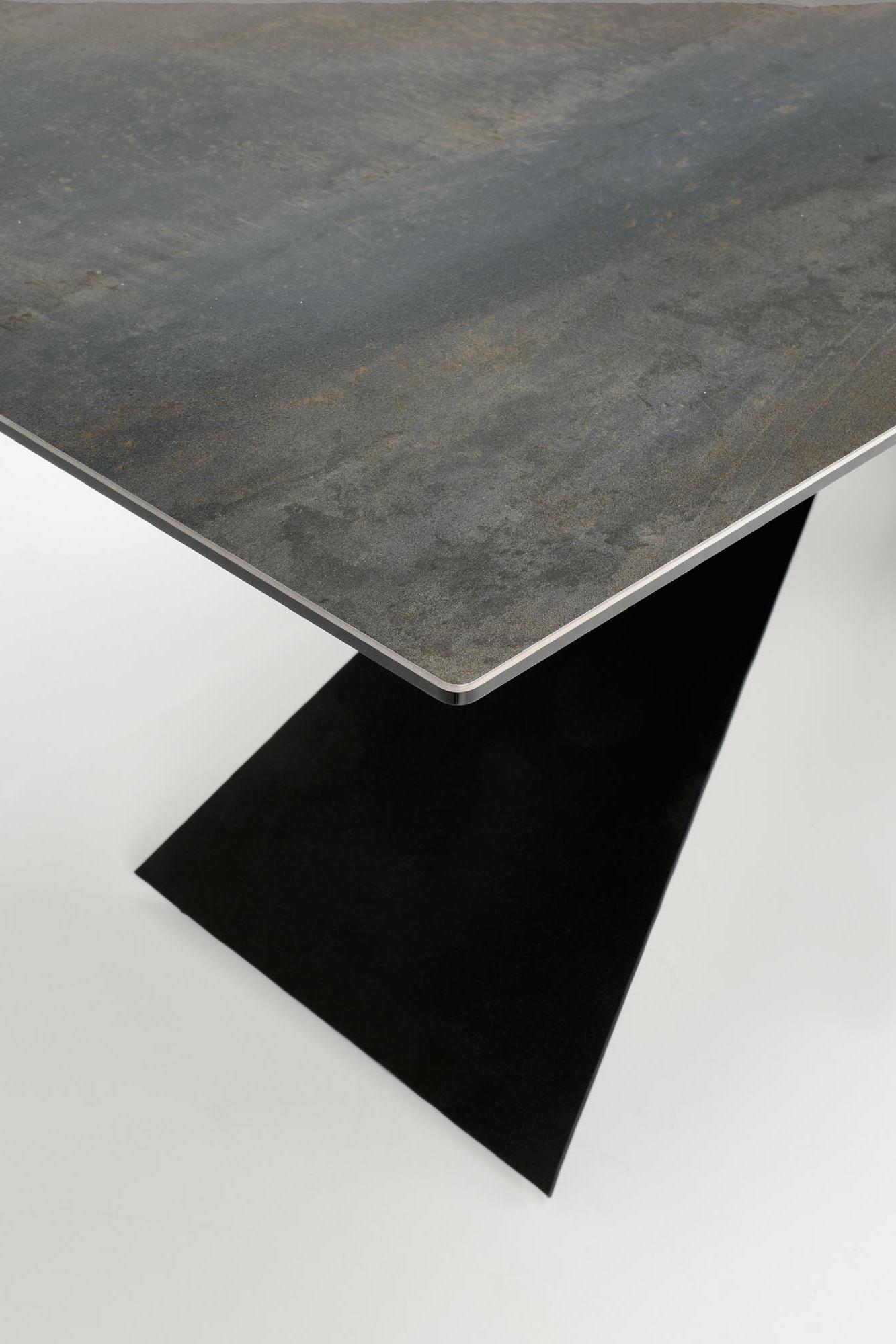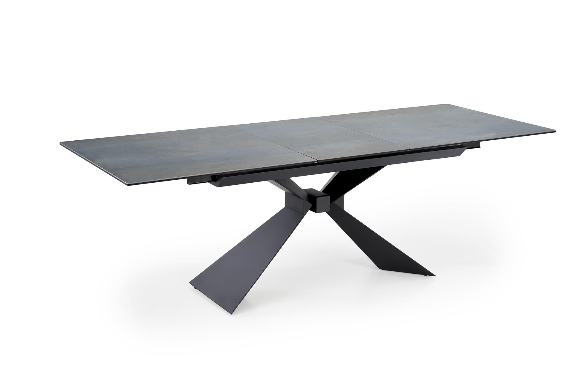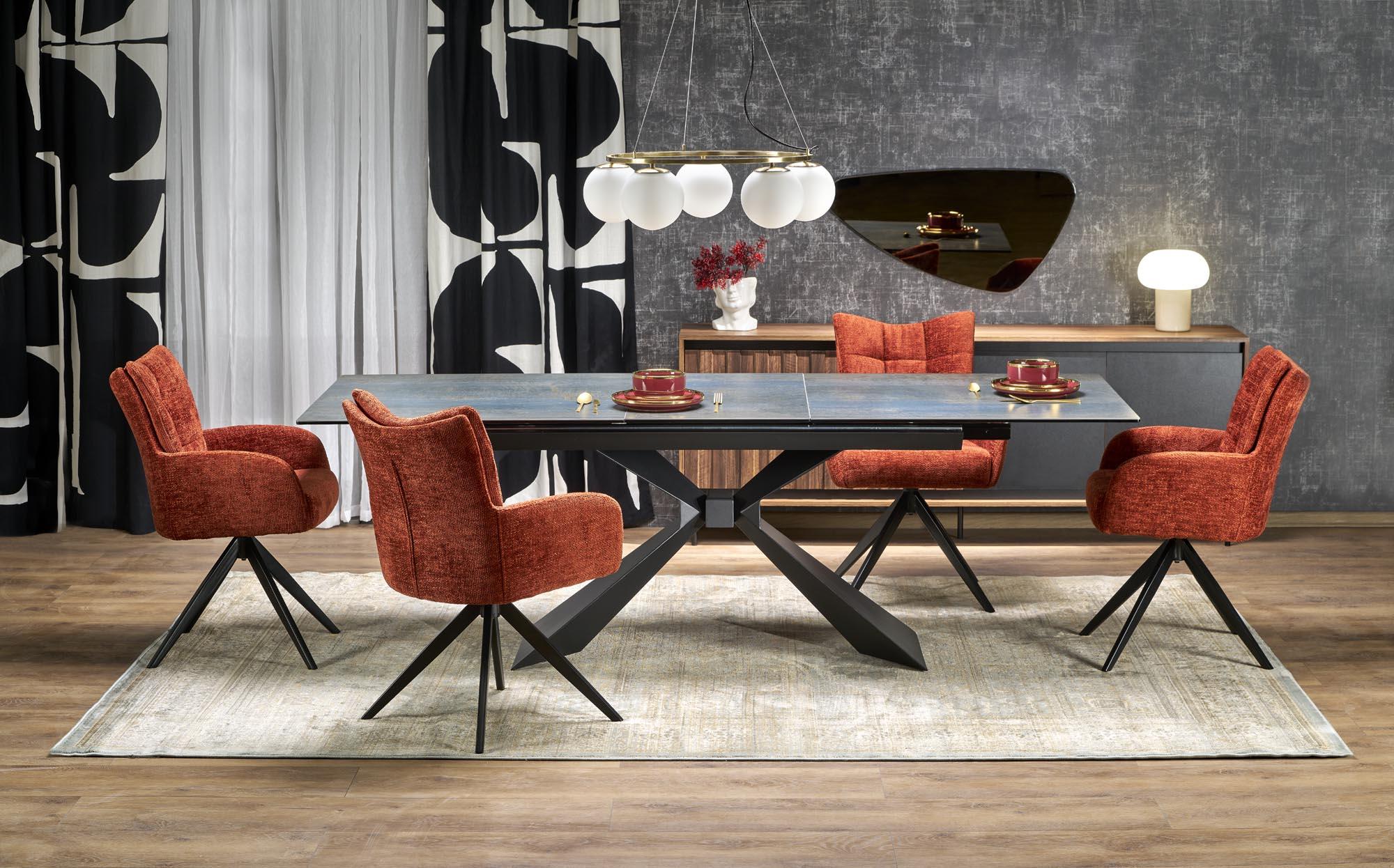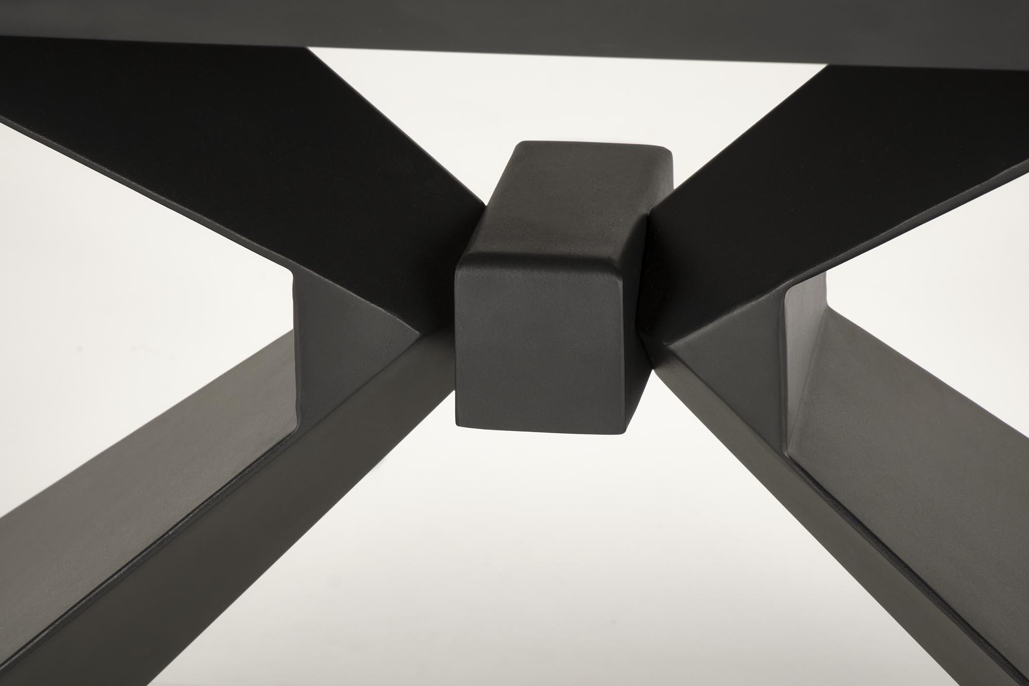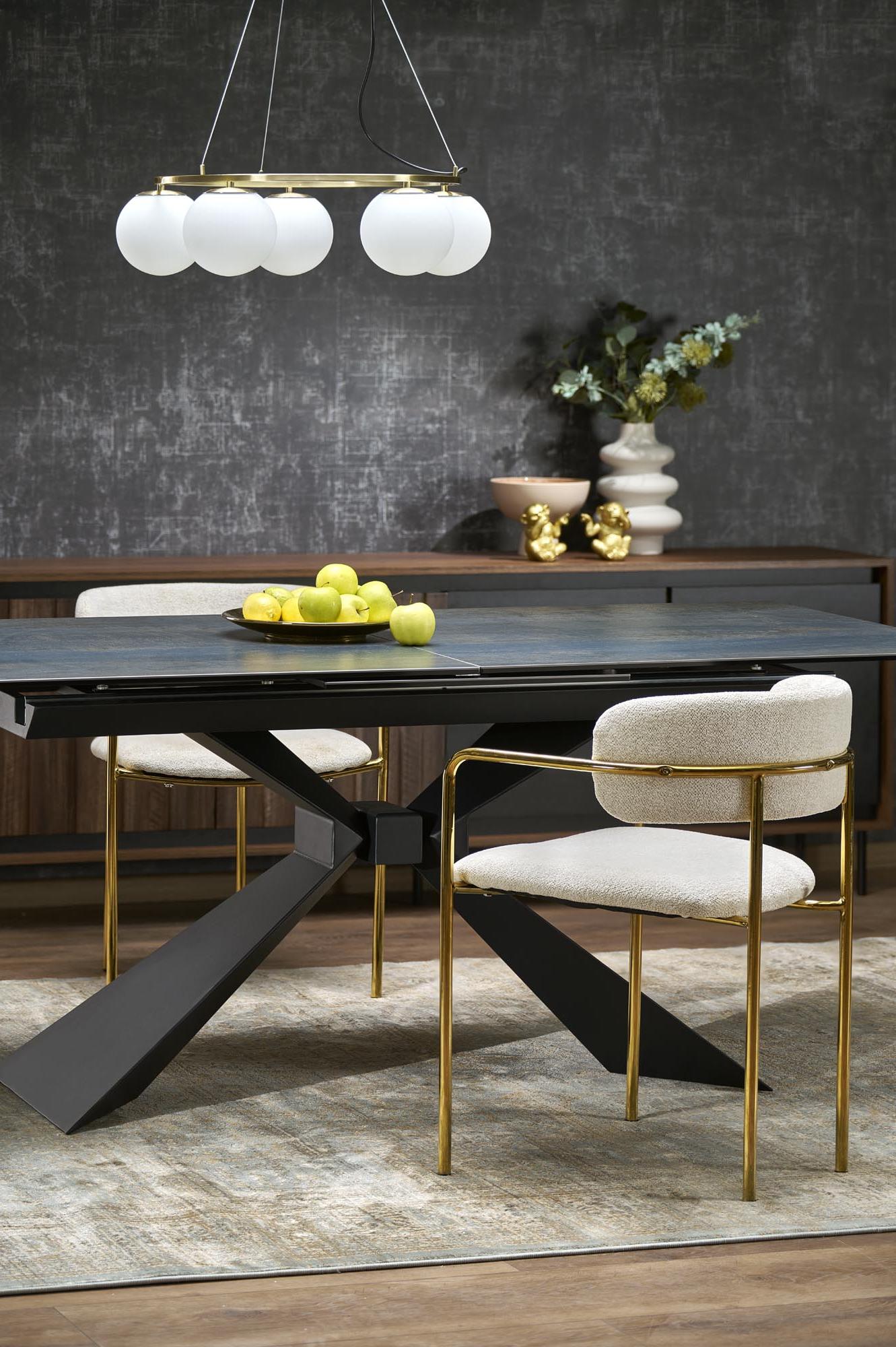 Stół wykonano z materiału: ceramika / szkło / stal malowana proszkowo, kolor blat - niebieski marmur, nogi - czarny