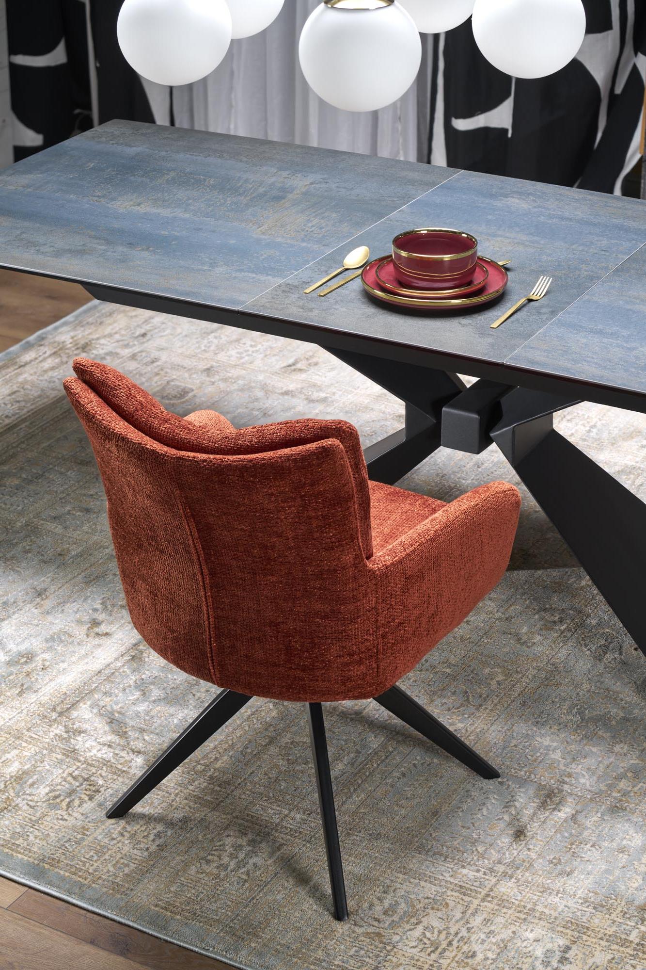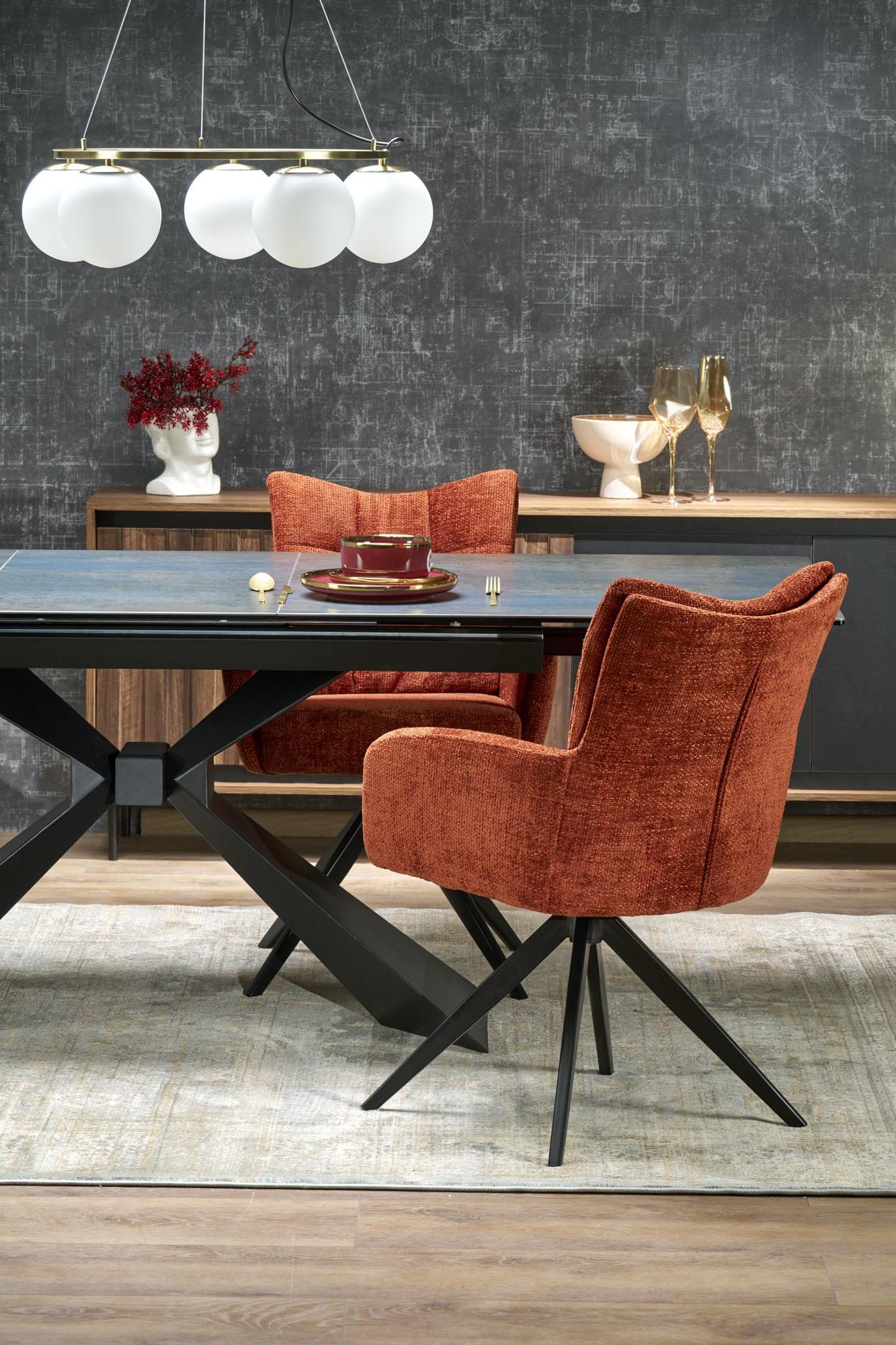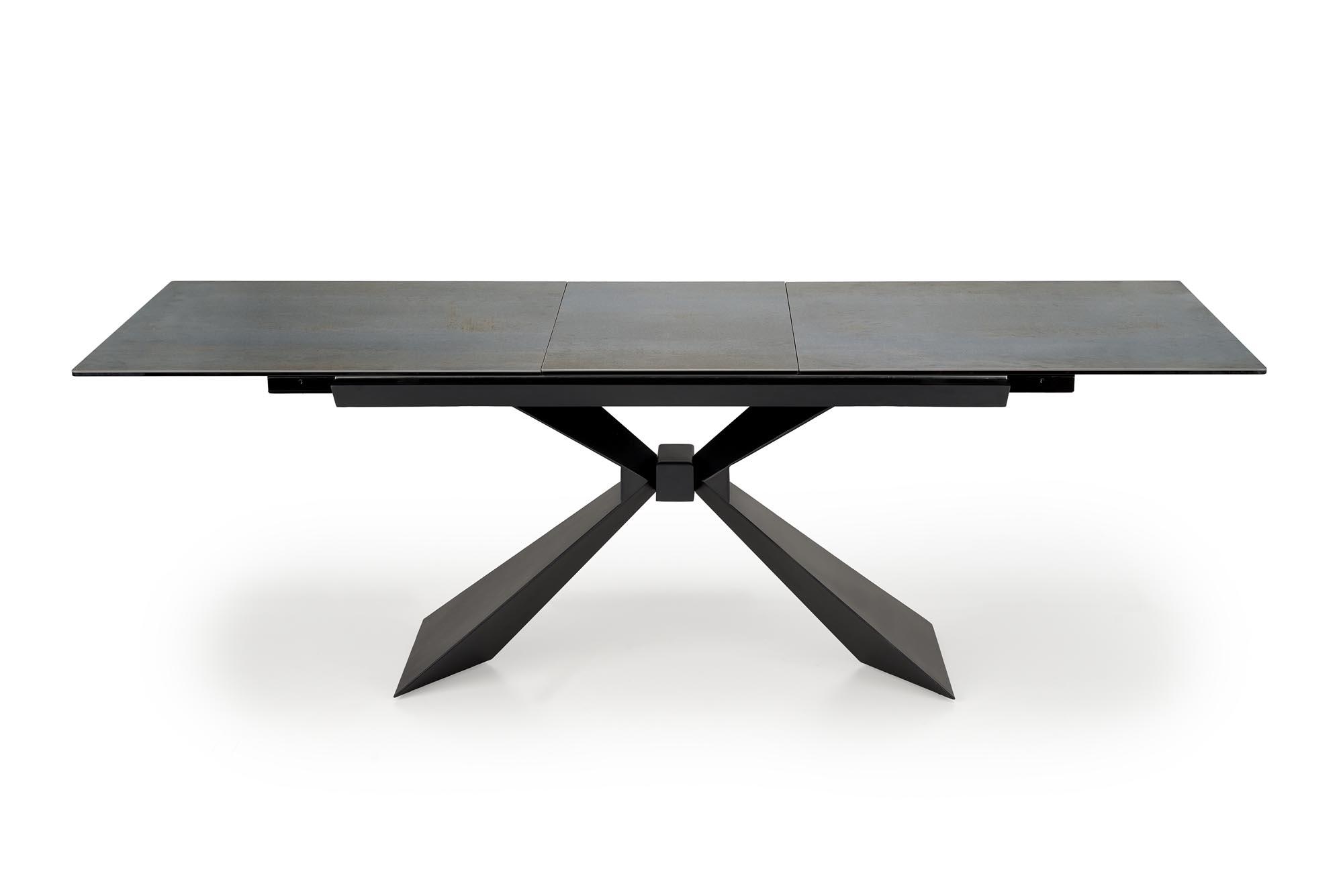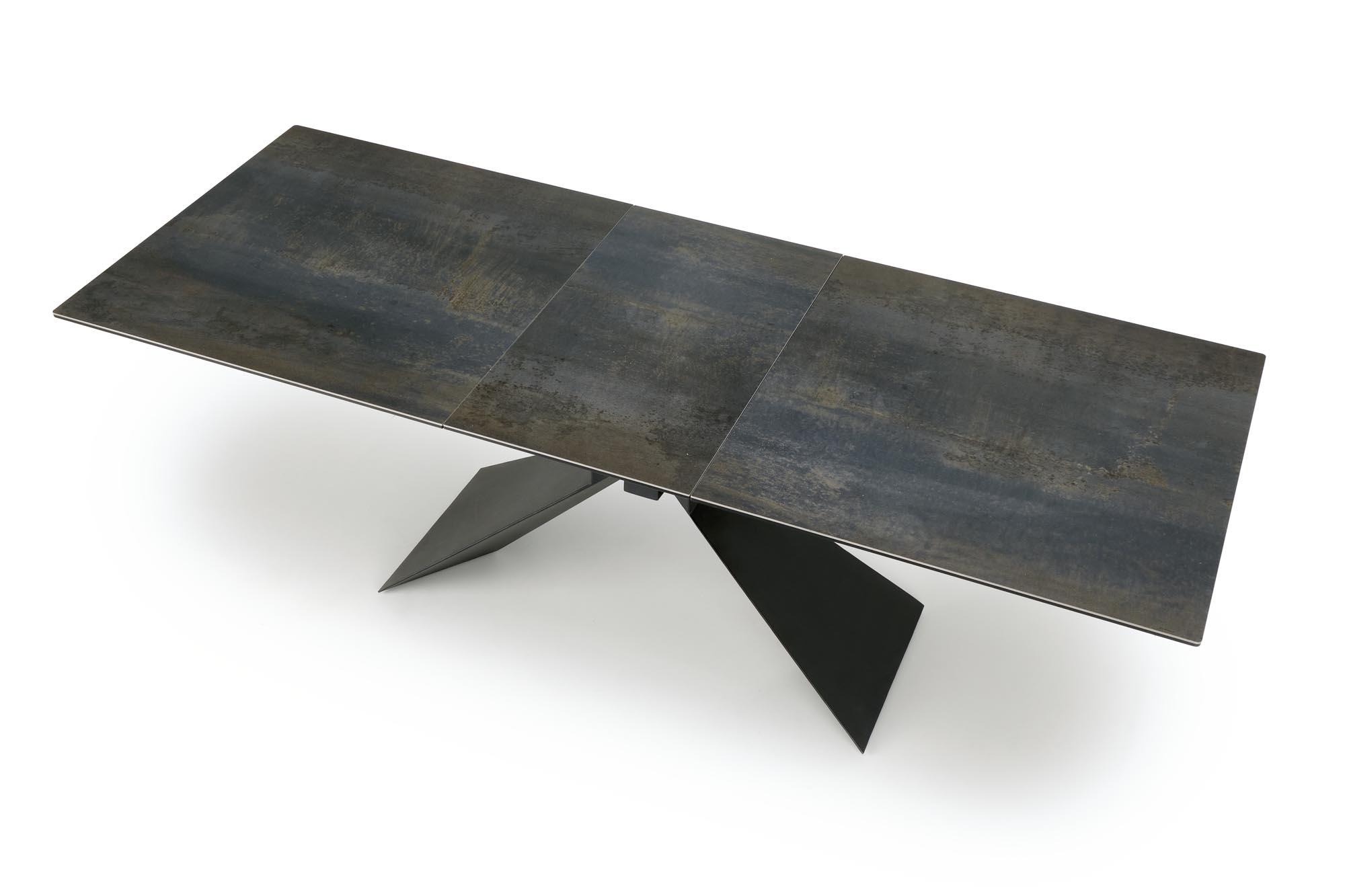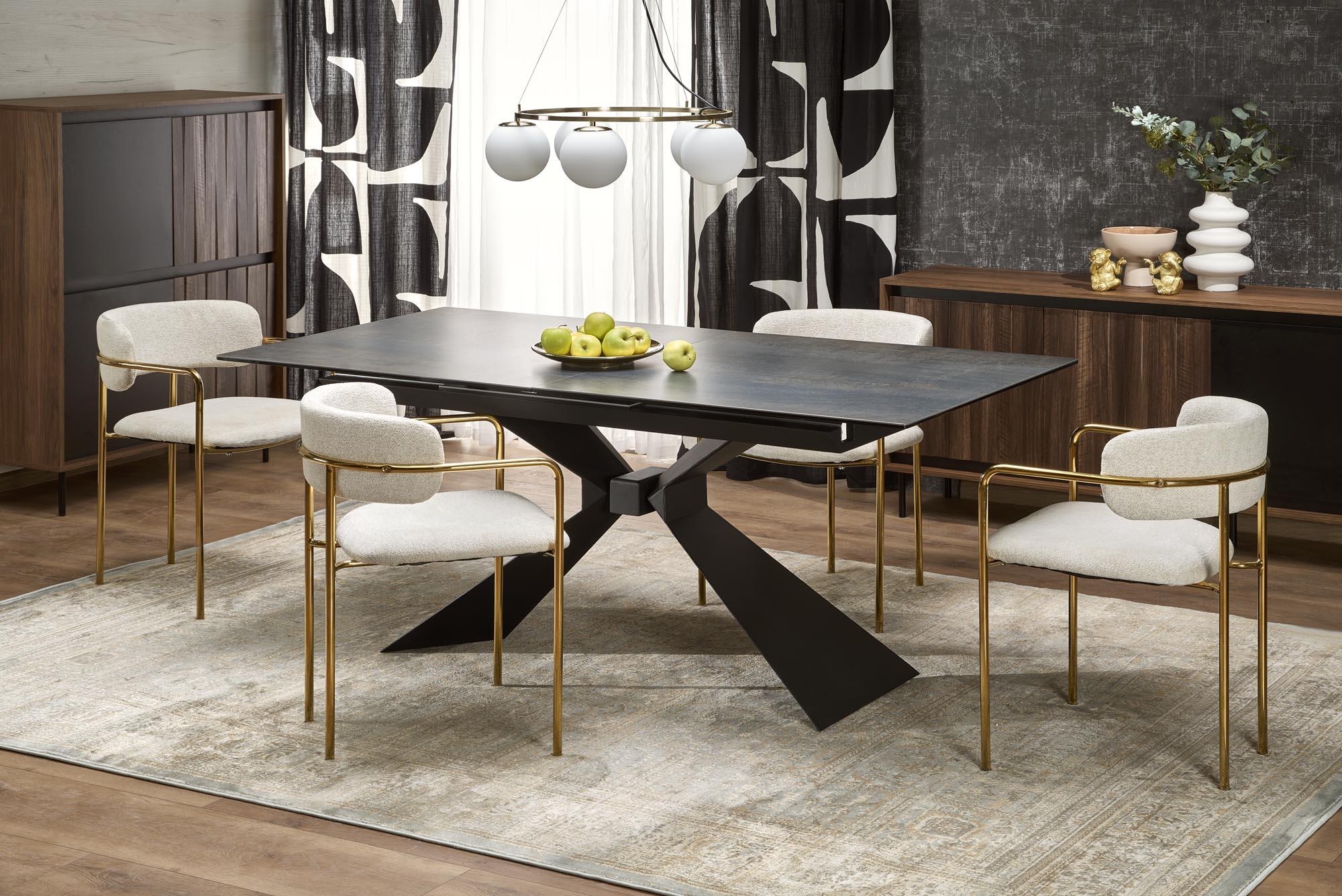 Stół wykonano z materiału: ceramika / szkło / stal malowana proszkowo, kolor blat - niebieski marmur, nogi - czarny