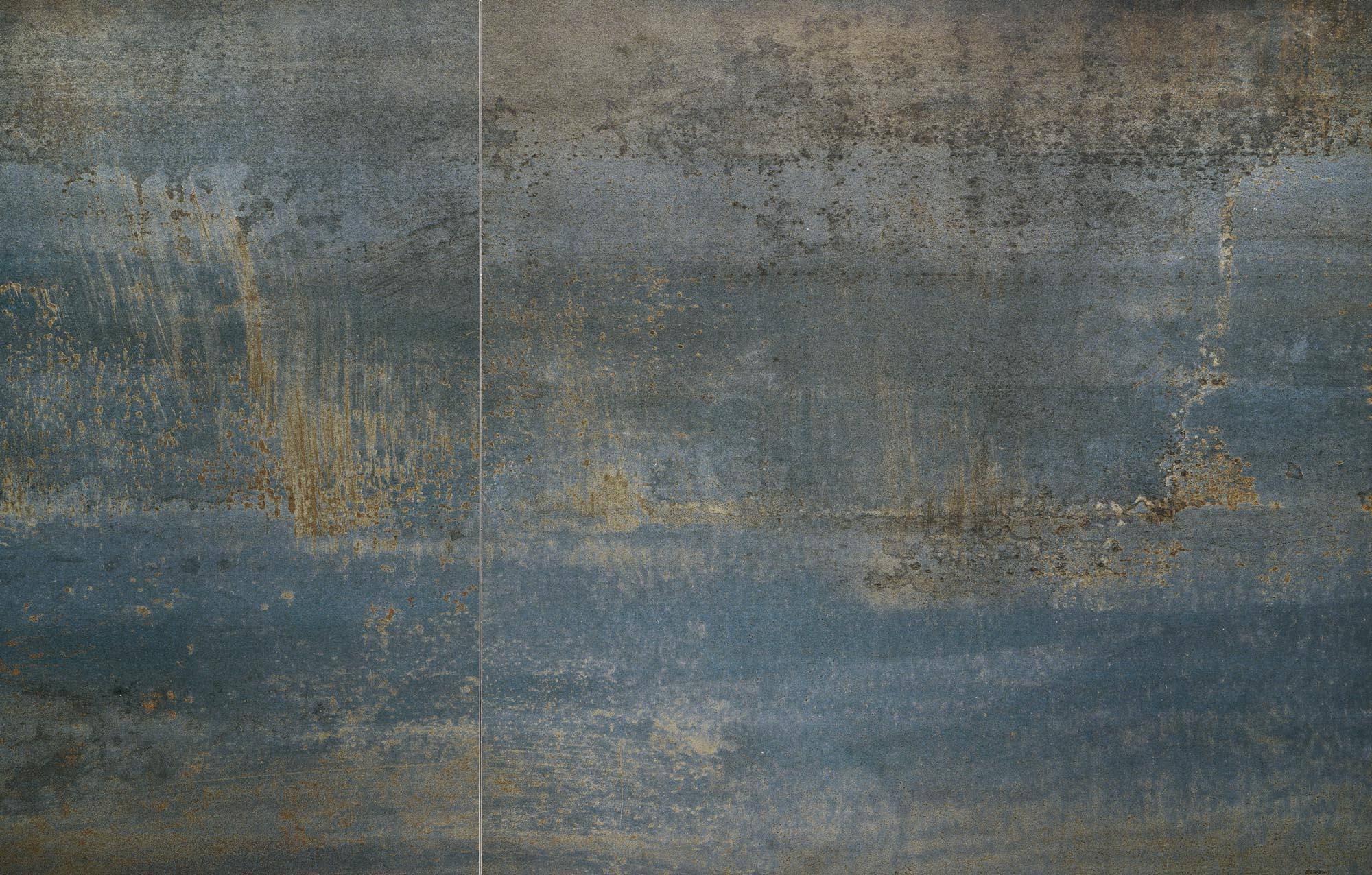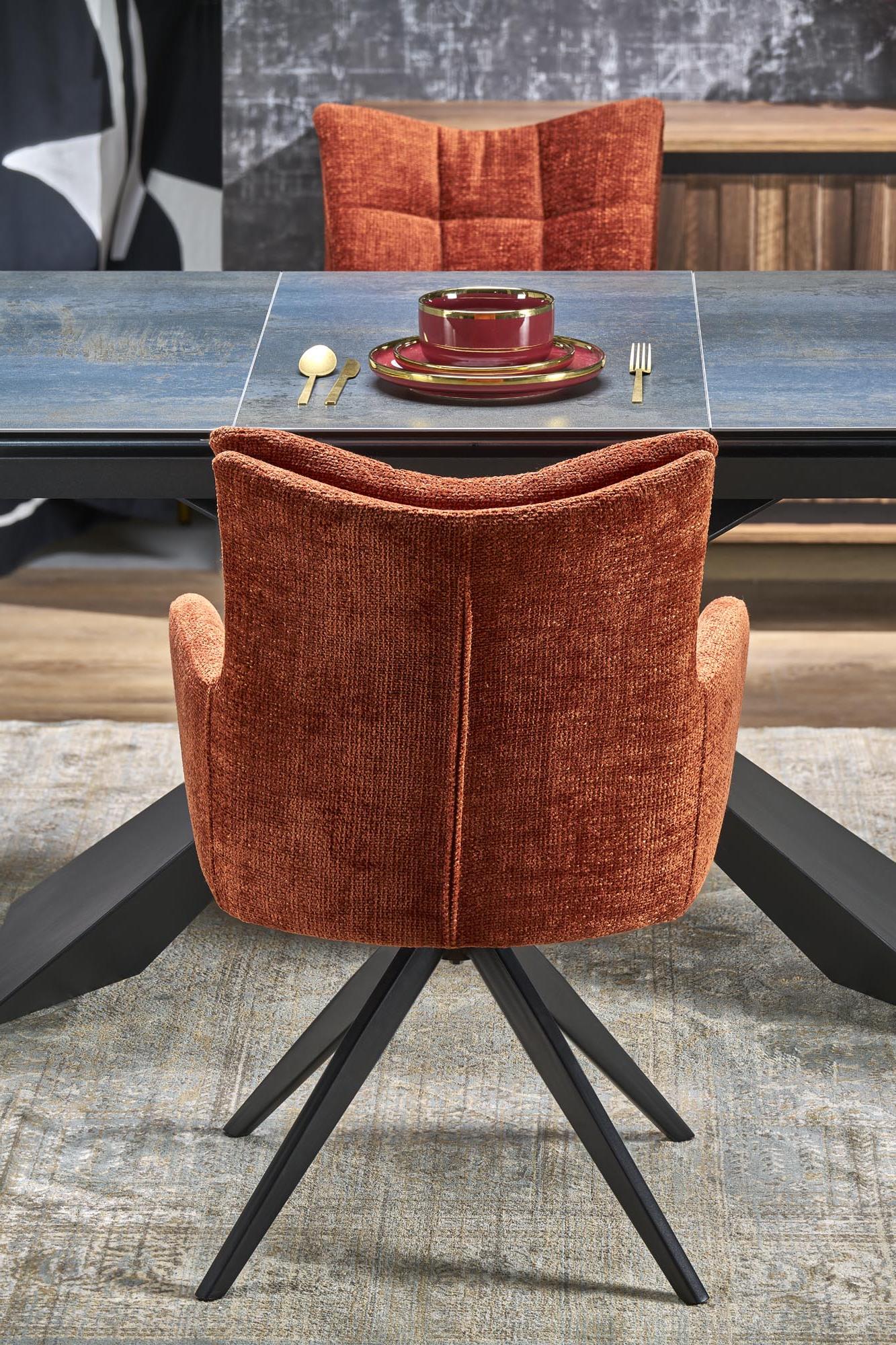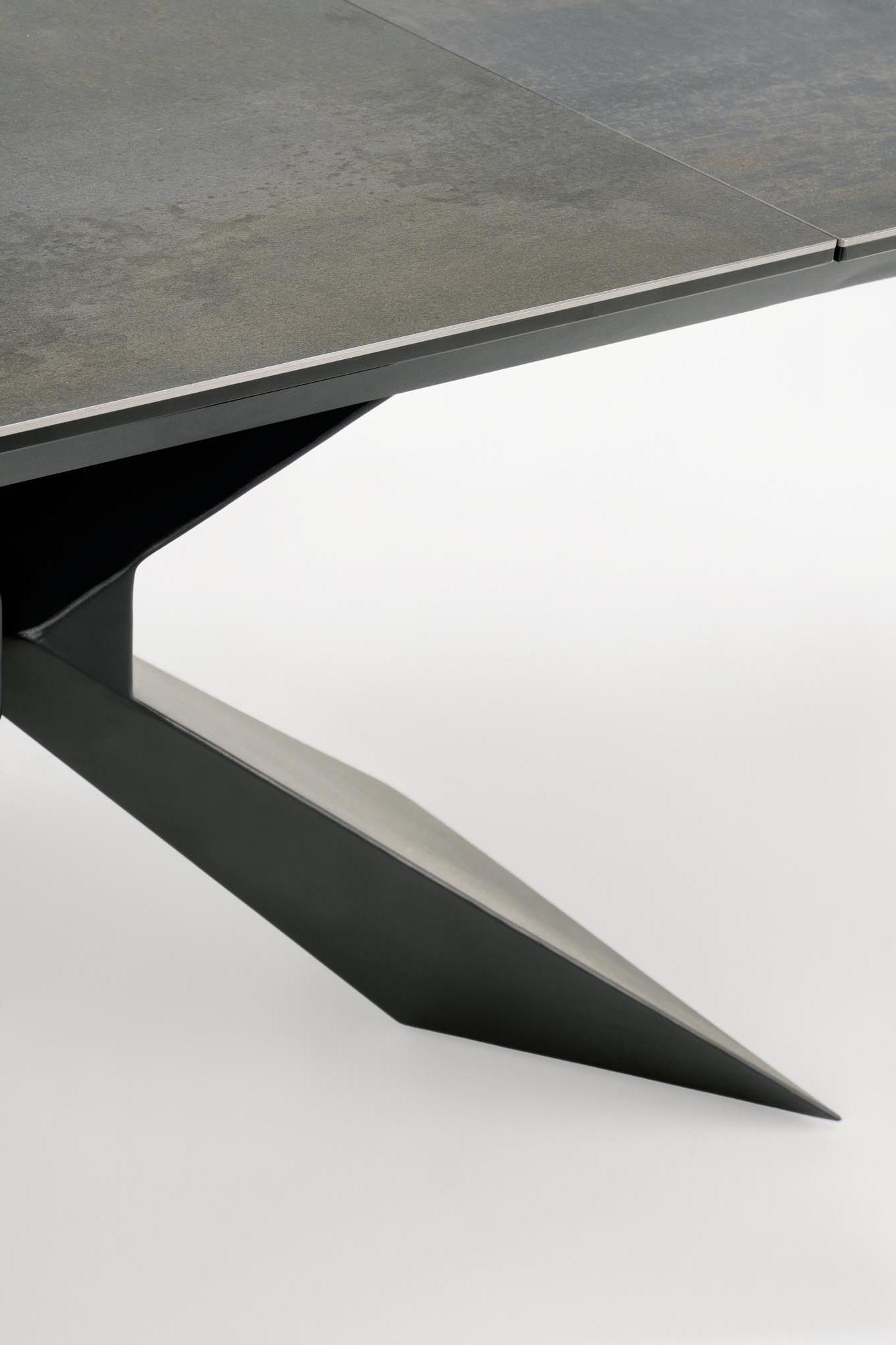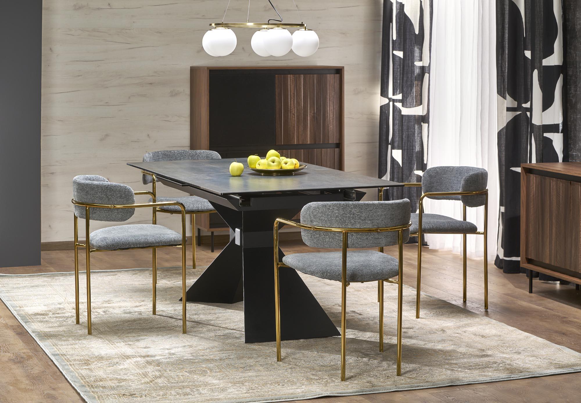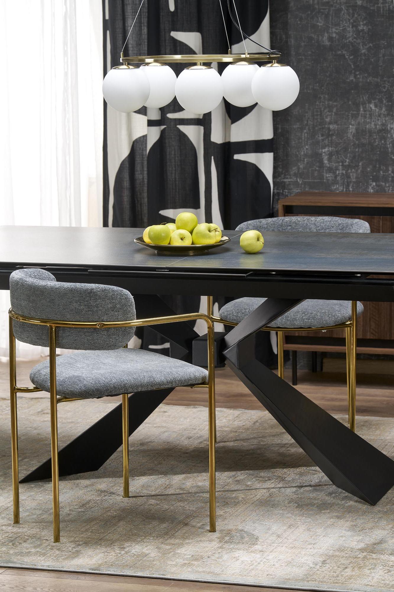 Stół wykonano z materiału: ceramika / szkło / stal malowana proszkowo, kolor blat - niebieski marmur, nogi - czarny