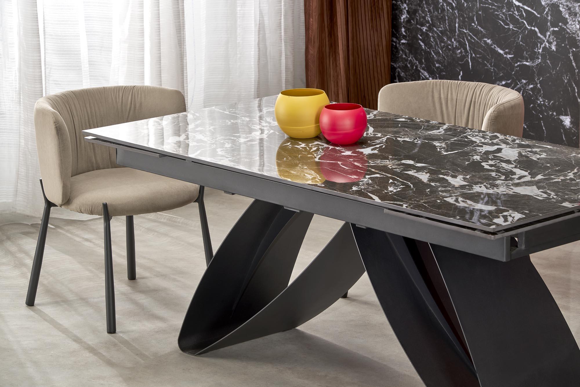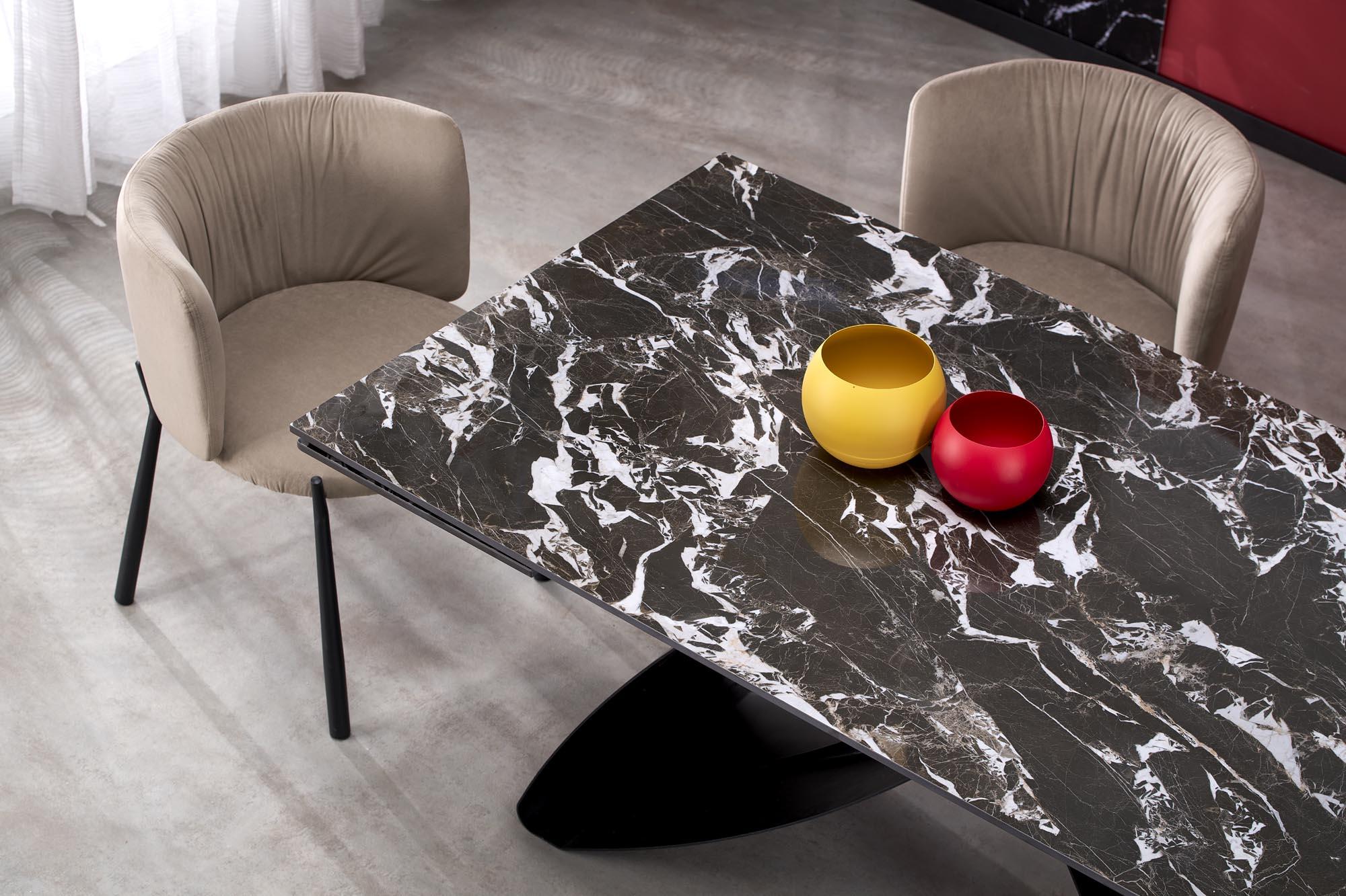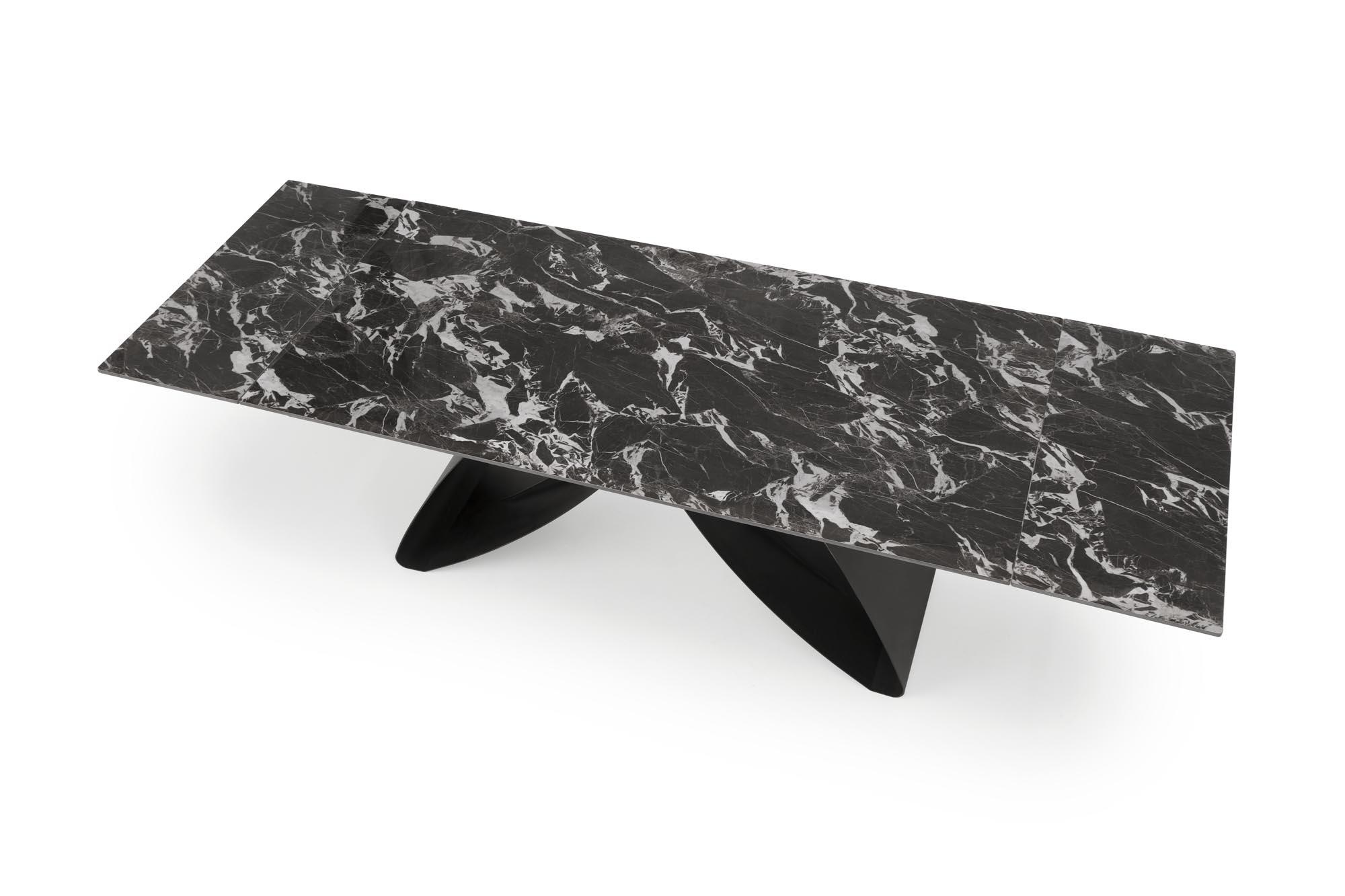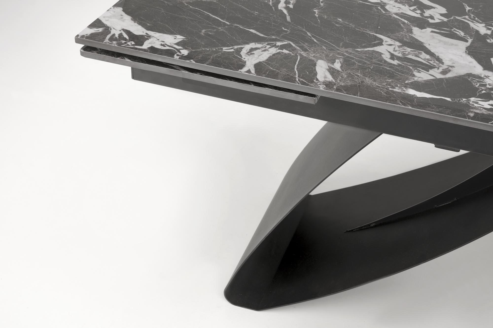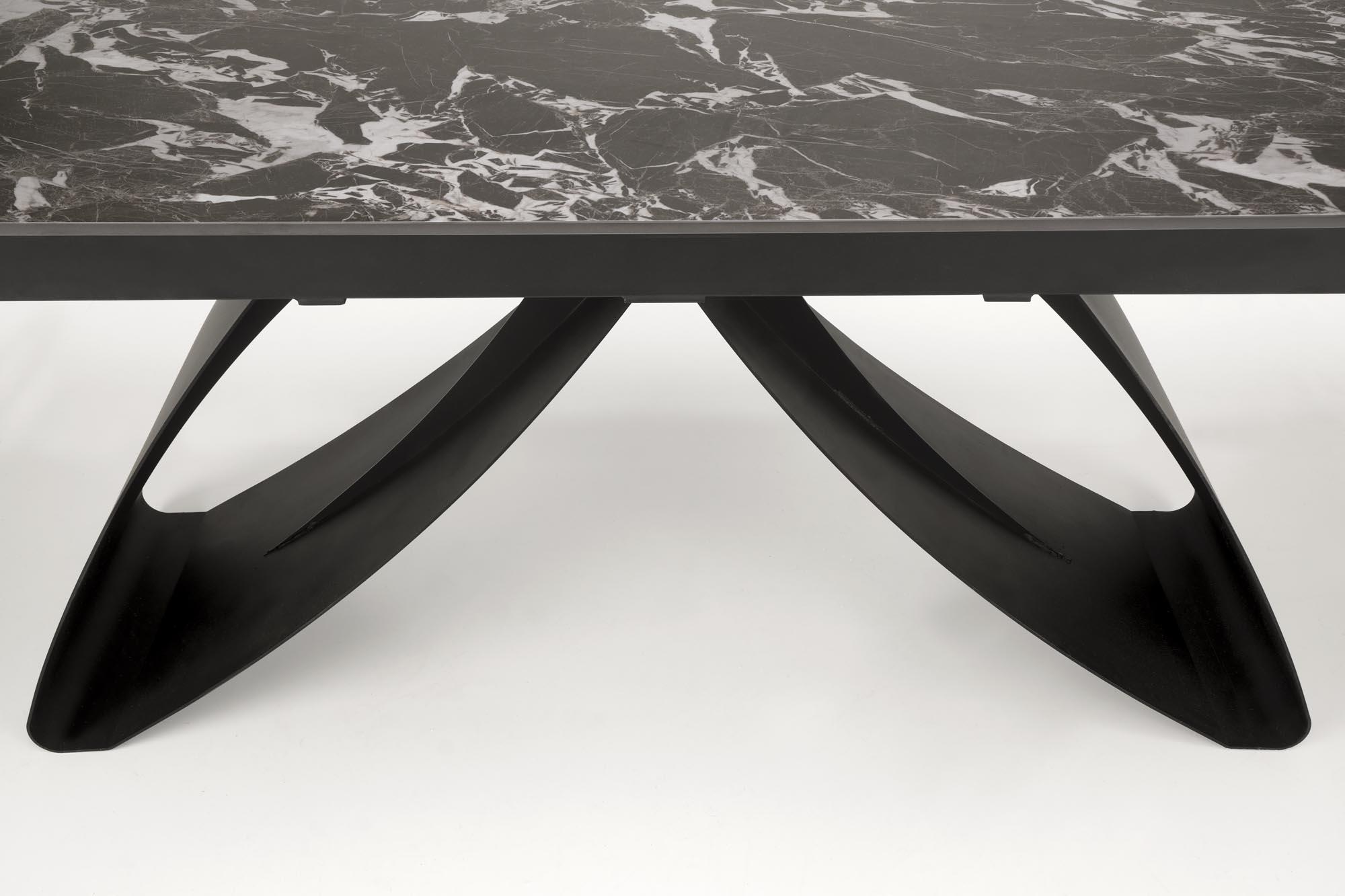Stół wykonano z materiału: spiek / stal malowana proszkowo, kolor blat - czarny marmur, nogi - czarny