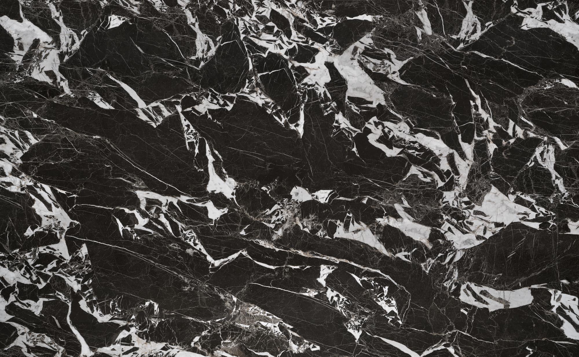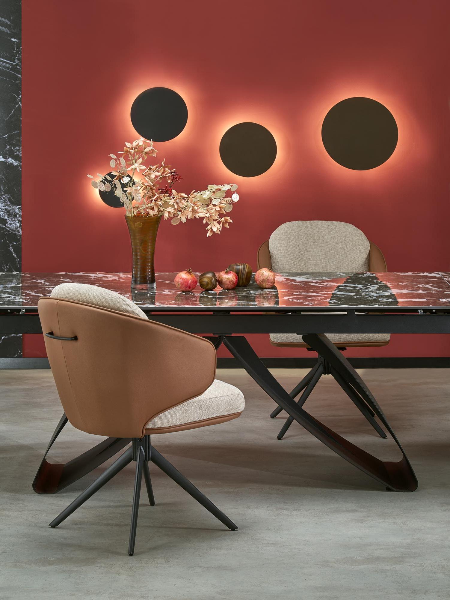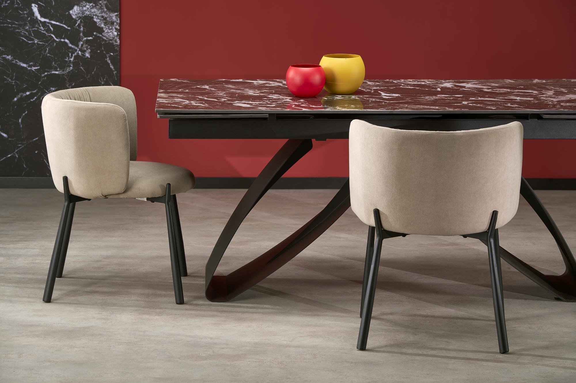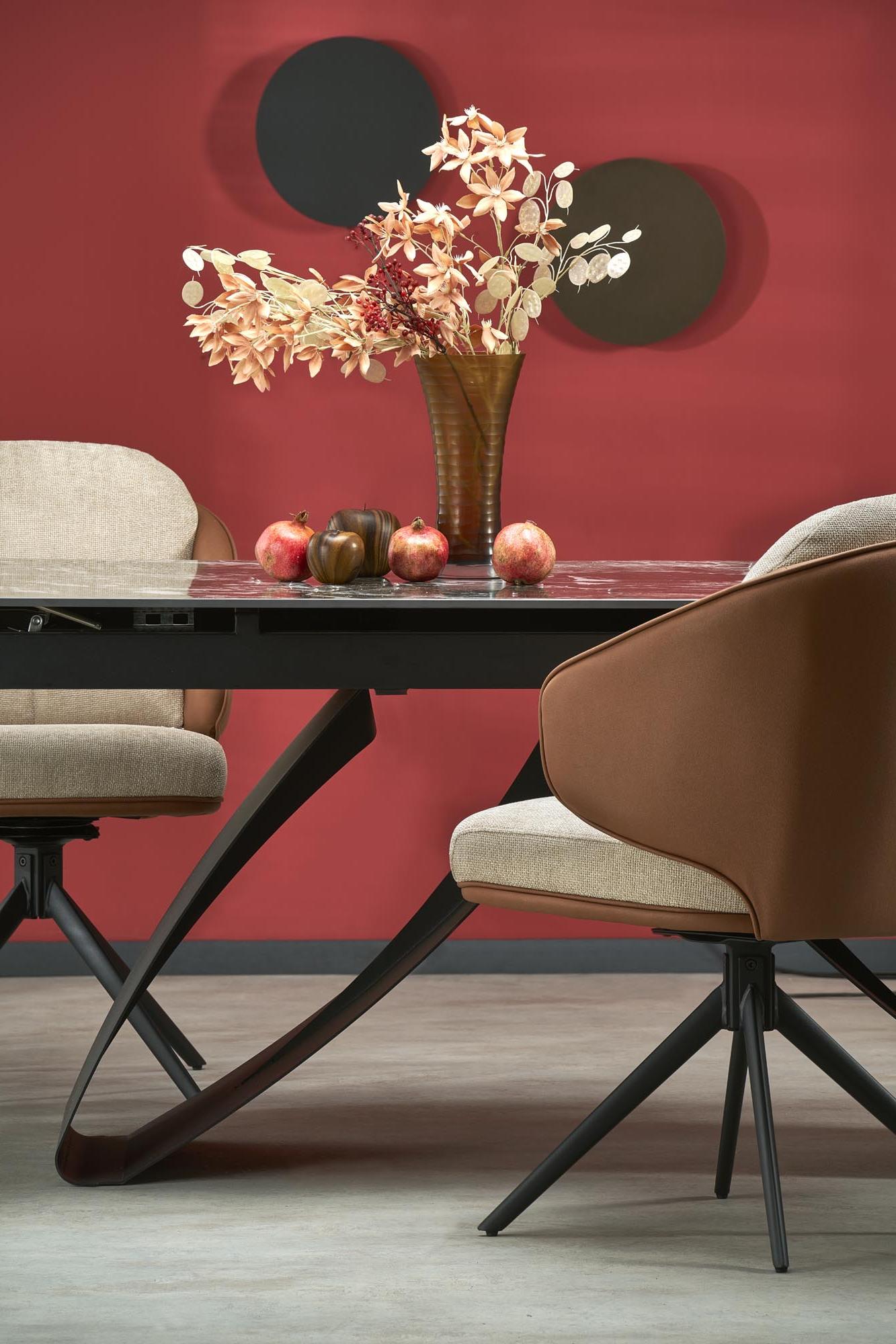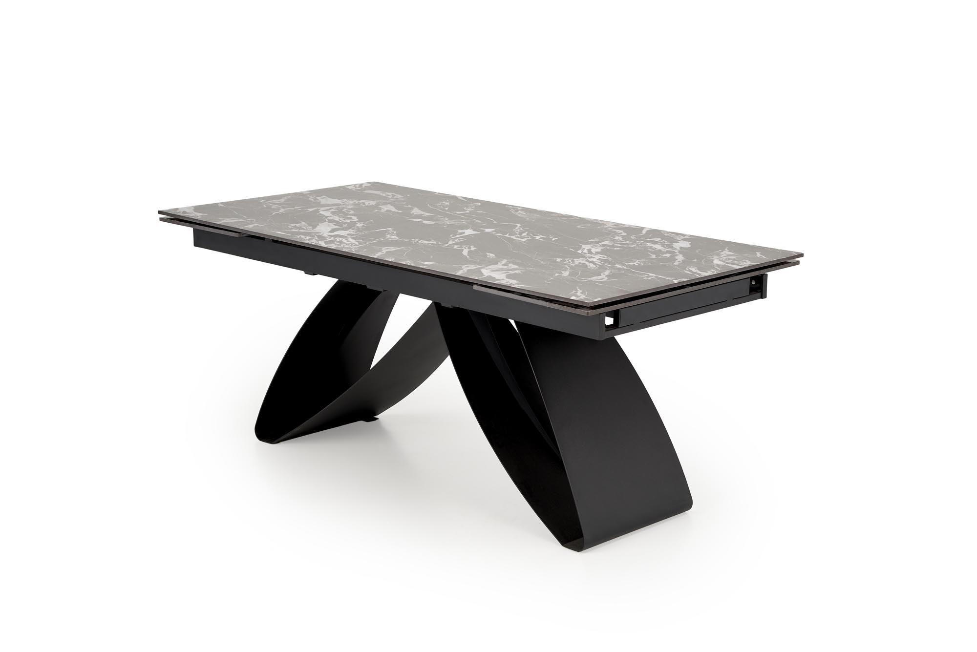 Stół wykonano z materiału: spiek / stal malowana proszkowo, kolor blat - czarny marmur, nogi - czarny