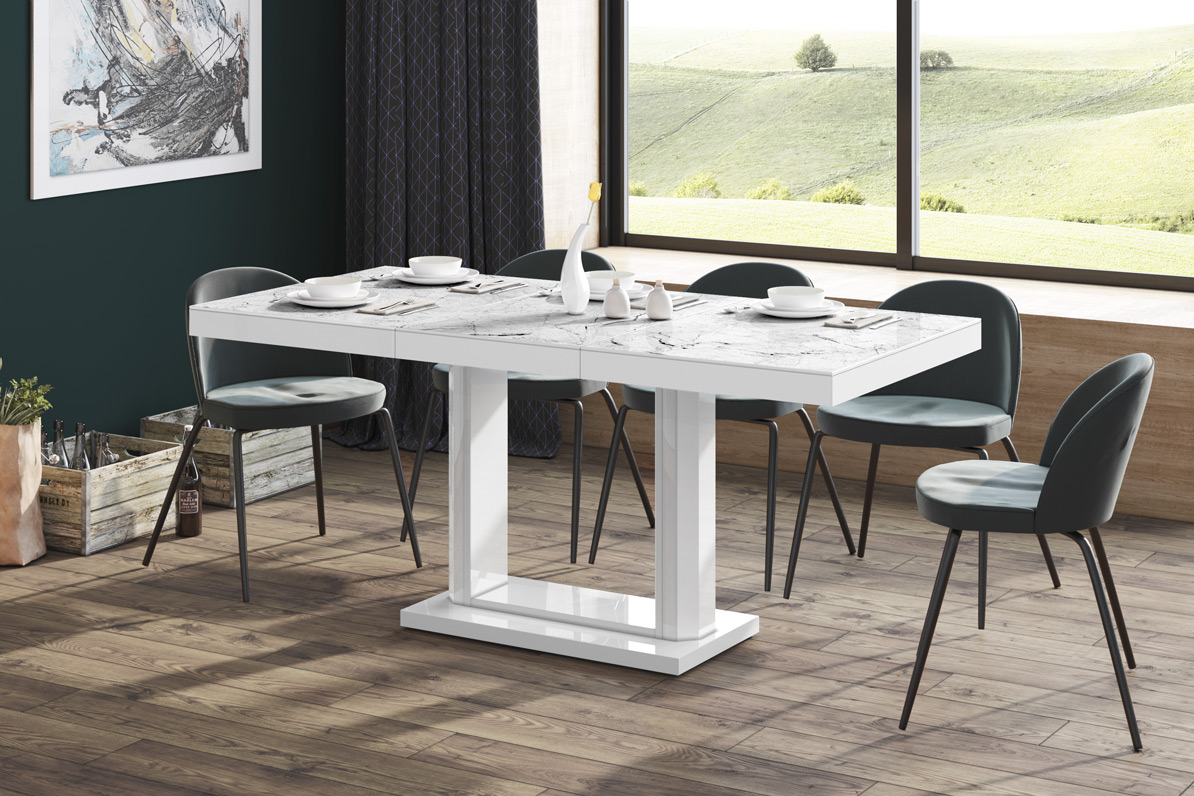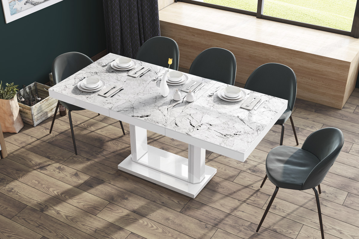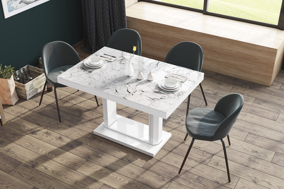 Stół Quadro 120 Marble White Hg+Biały Super Print (Hg/Mat)