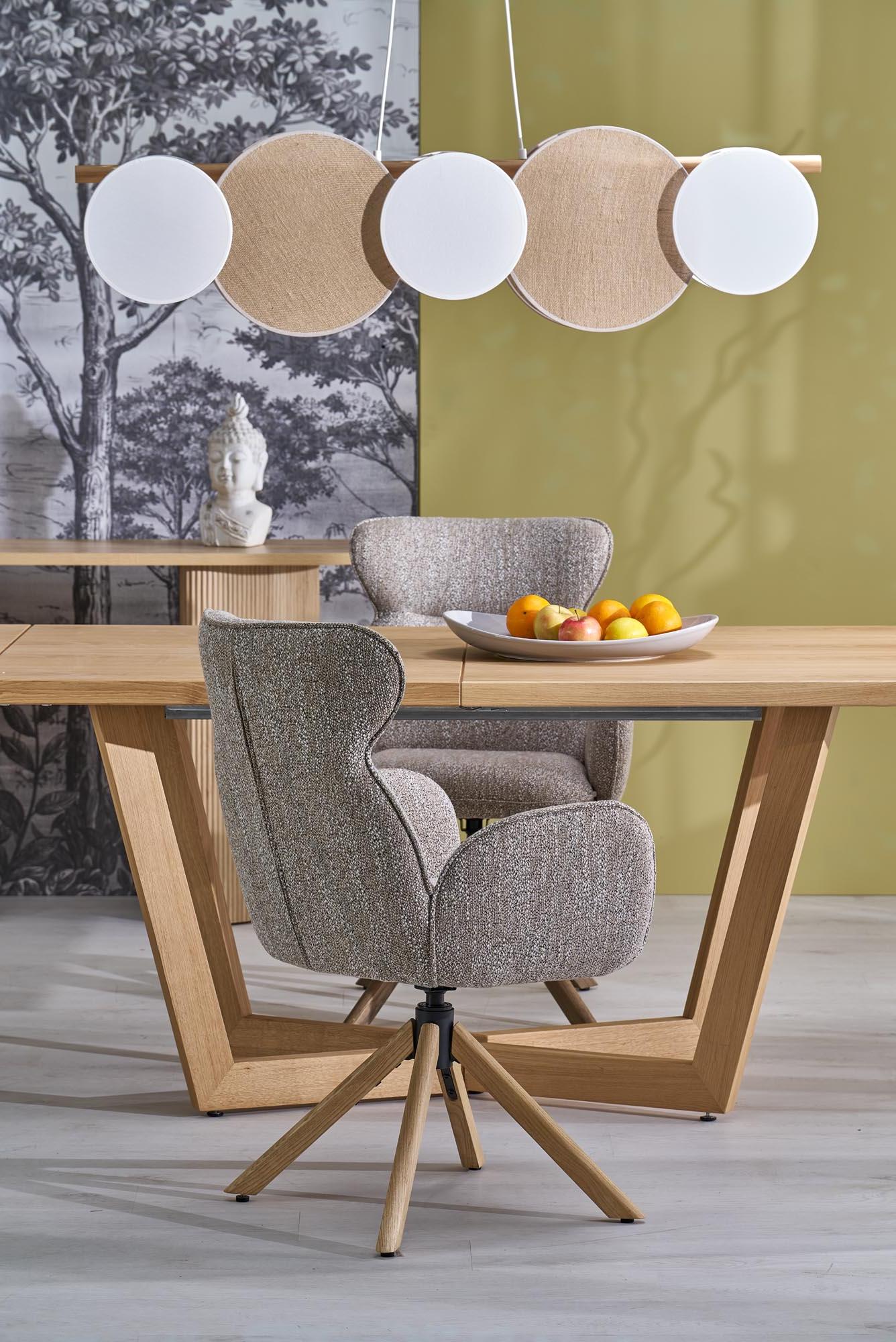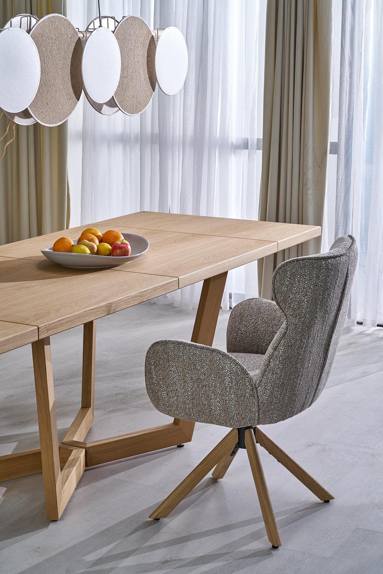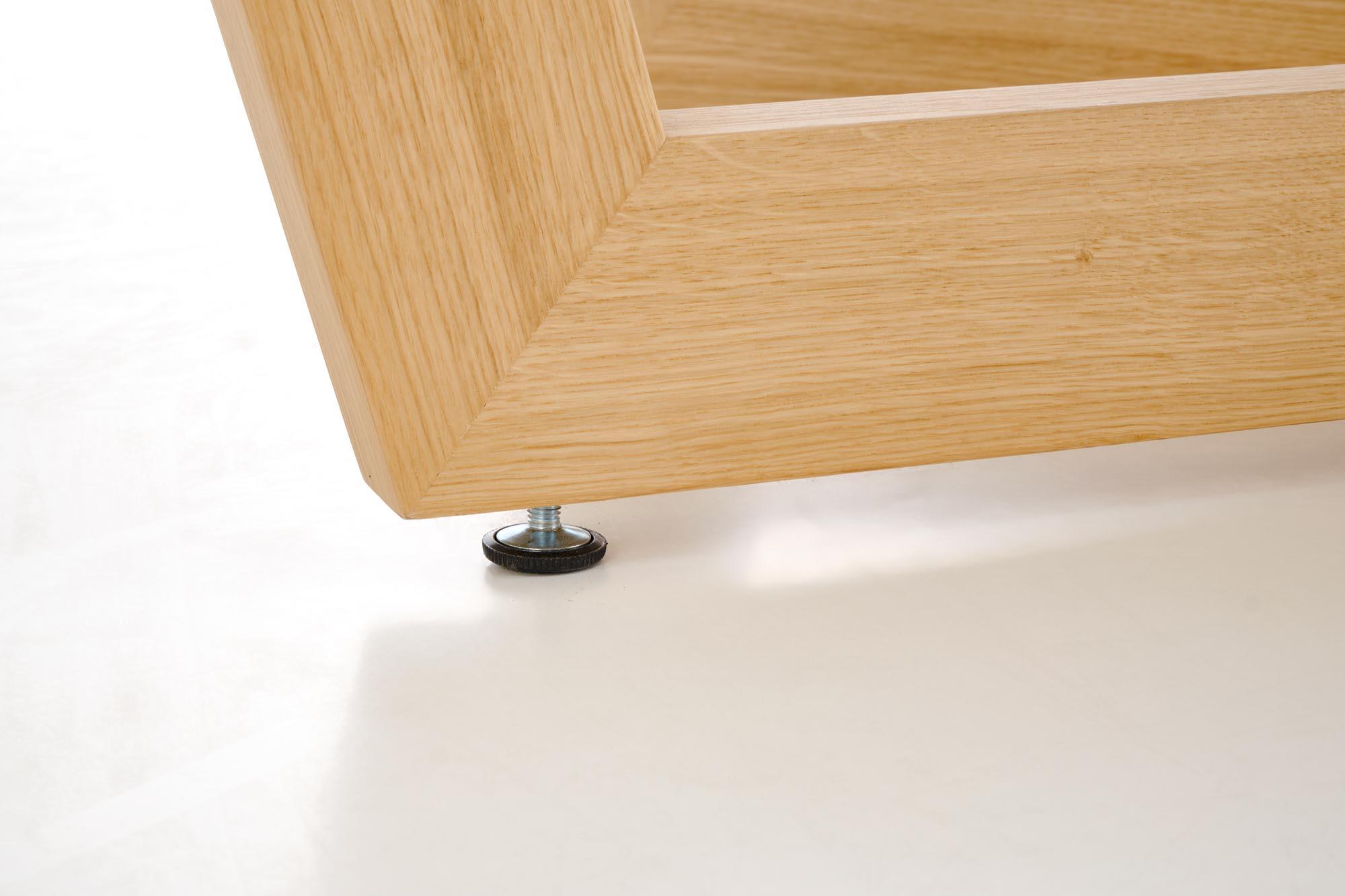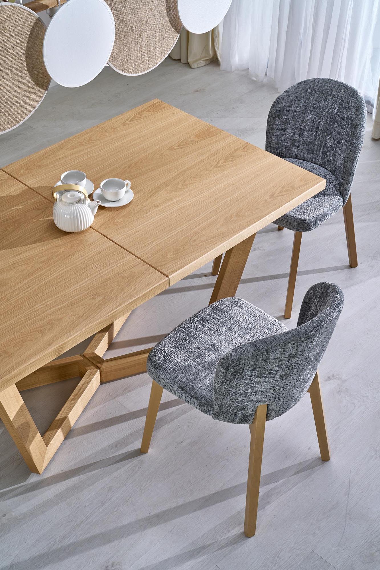 Stół wykonano z materiału: blat - płyta fornirowana, na obrzeżach drewno lite, nogi - drewno lite dębowe, kolor blat – dąb naturalny, nogi - dąb naturalny, * w opcji przedłużki do blatów MASSIVE 3 (wymiary 45x90 cm - 2 szt.)