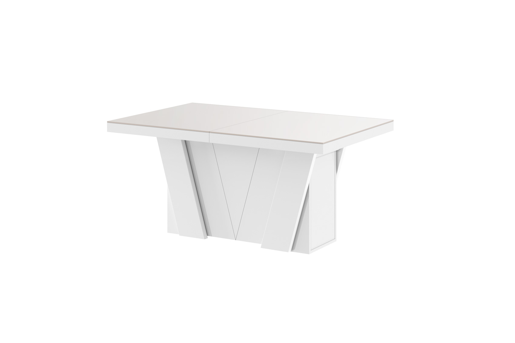 Stół rozkładany do jadalni prostokątny biały na dwóch kolumnowych nogach osadzonych na stalowej płycie
