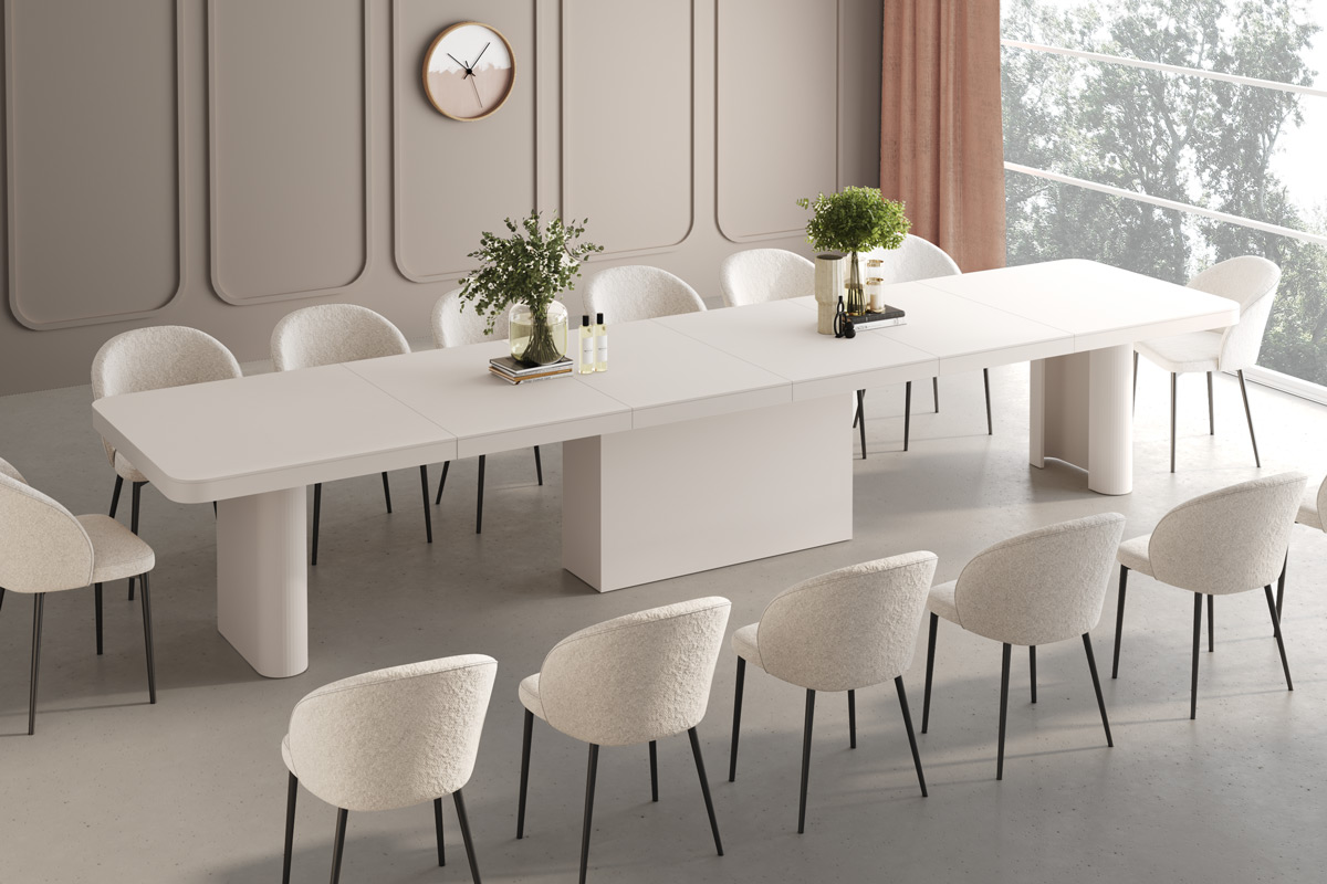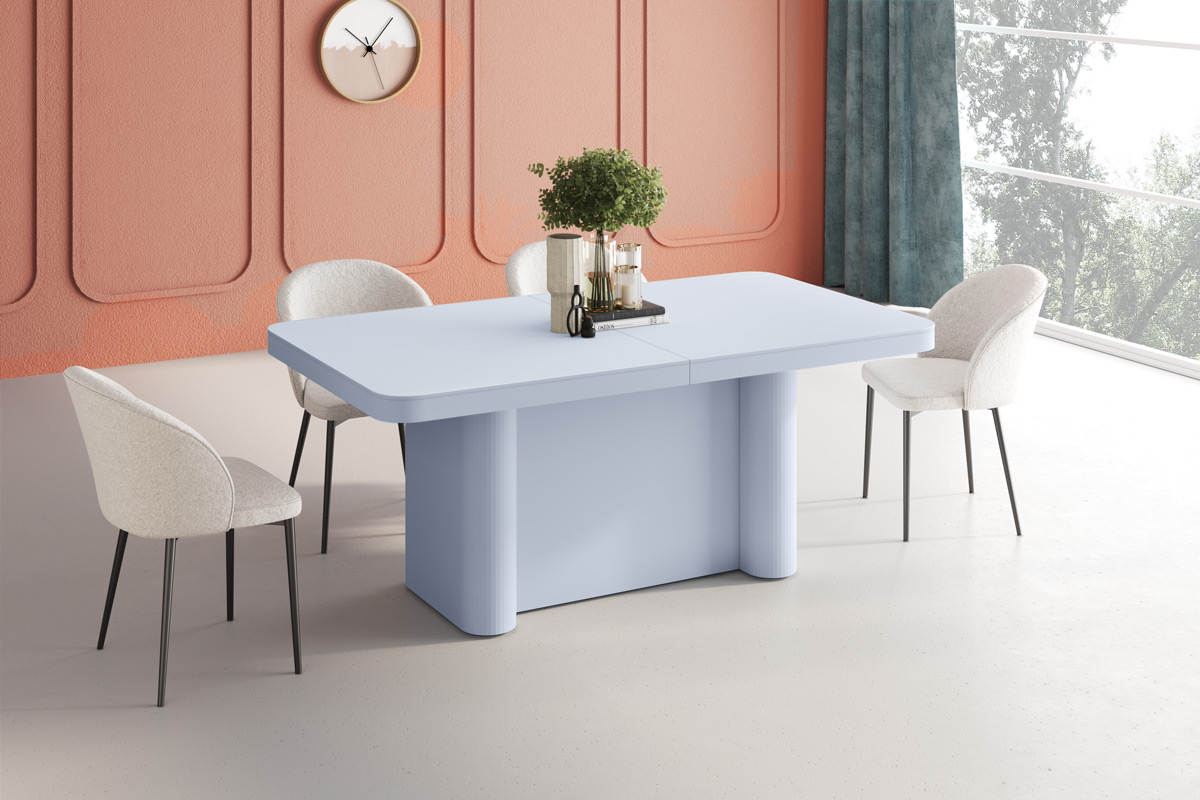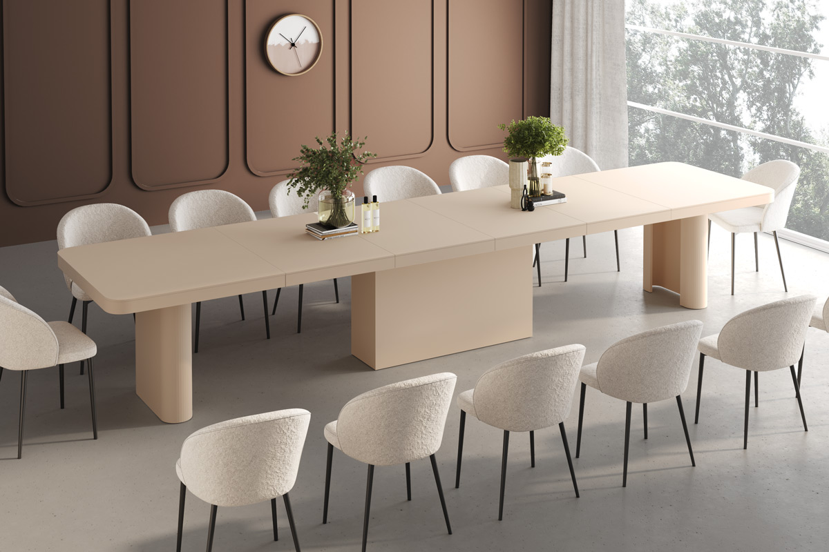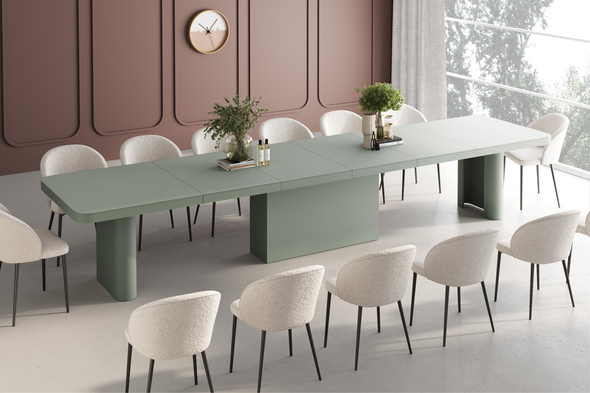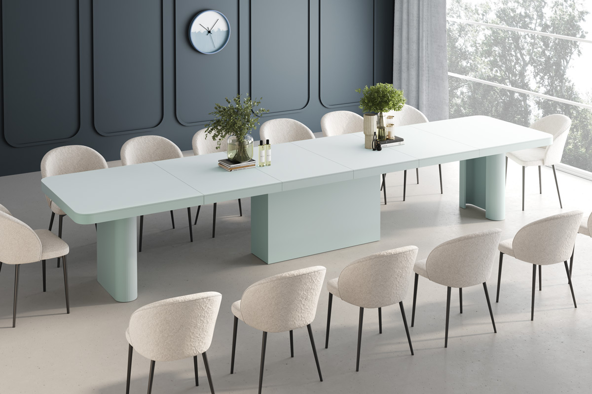 Największy dostępny na rynku stół, kolorowy i doskonały zarówno na rodzinne spotkania, jak i na eleganckie spotkania biznesowe. Stanowi kwintesencję połączenia funkcjonalności z nowoczesnym designem. Owalny, zaokrąglony blat nie tylko nadaje mu lekkości, ale także sprzyja wygodnej interakcji pomiędzy wszystkimi siedzącymi.