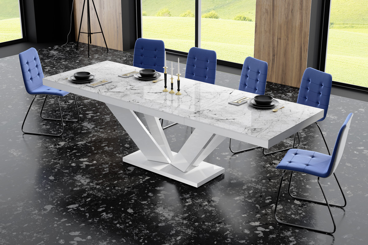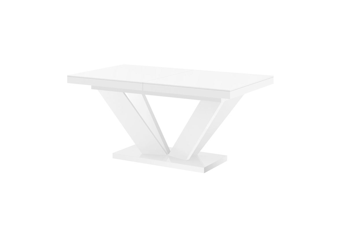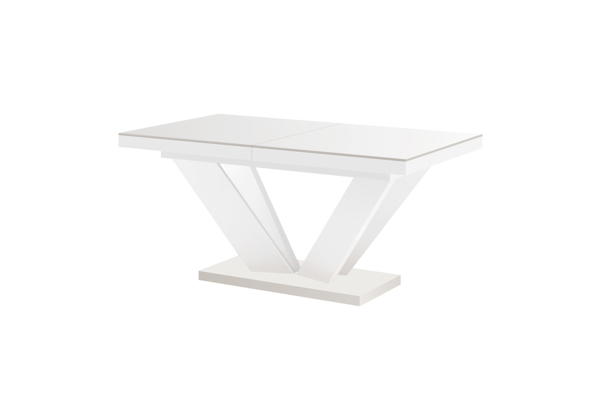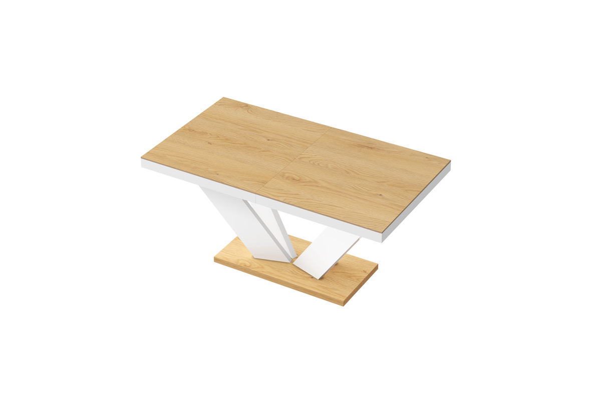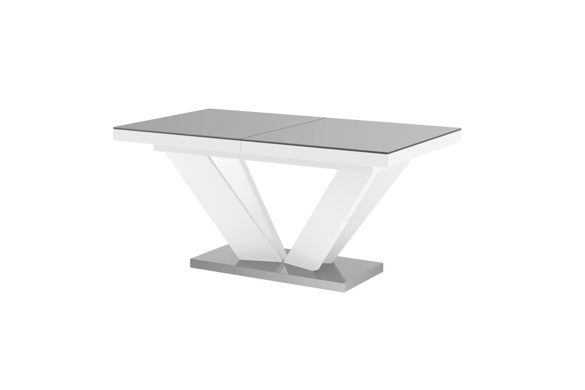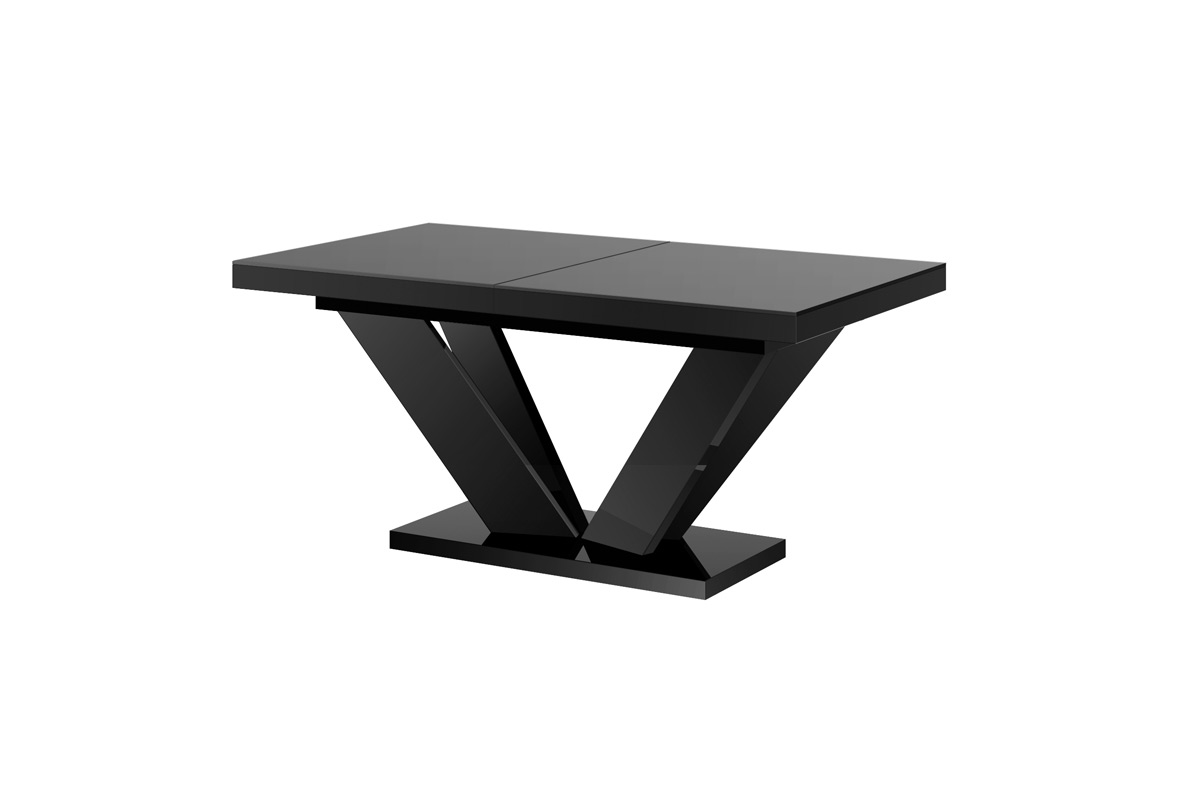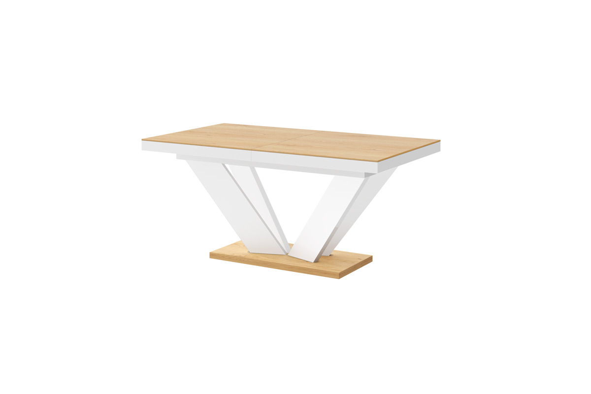 Stół VIVA 2 to oryginalny i niezwykle elegancki projekt firmy Hubertus. Wyróżnia go niespotykany design (podstawa stołu w kształcie delikatnych, prostokątnych czterech nóg ułożonych w kształt liter V) oraz funkcjonalność (rozkładany blat z miejscem do przechowywania dodatkowych wkładek pod blatem).