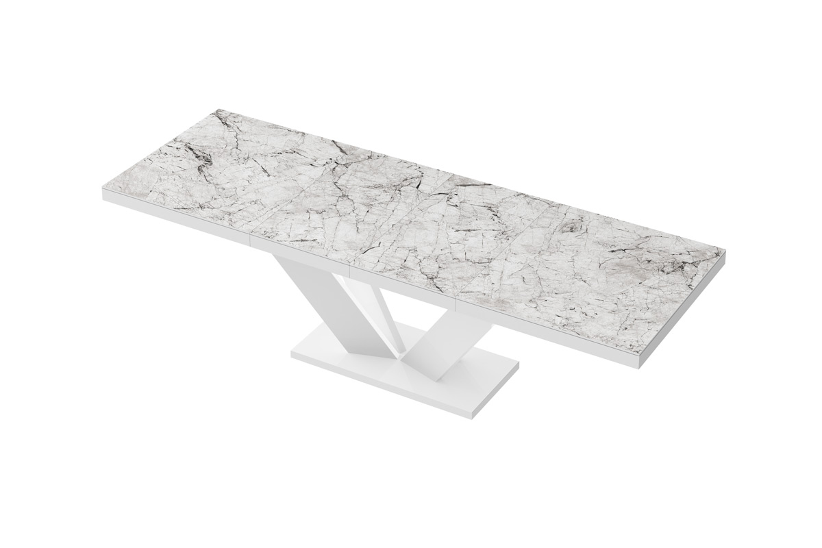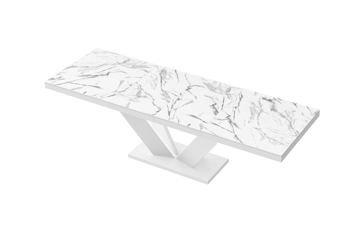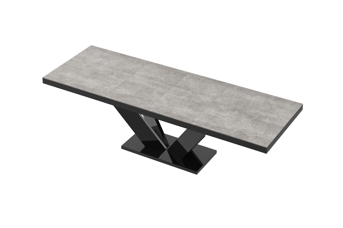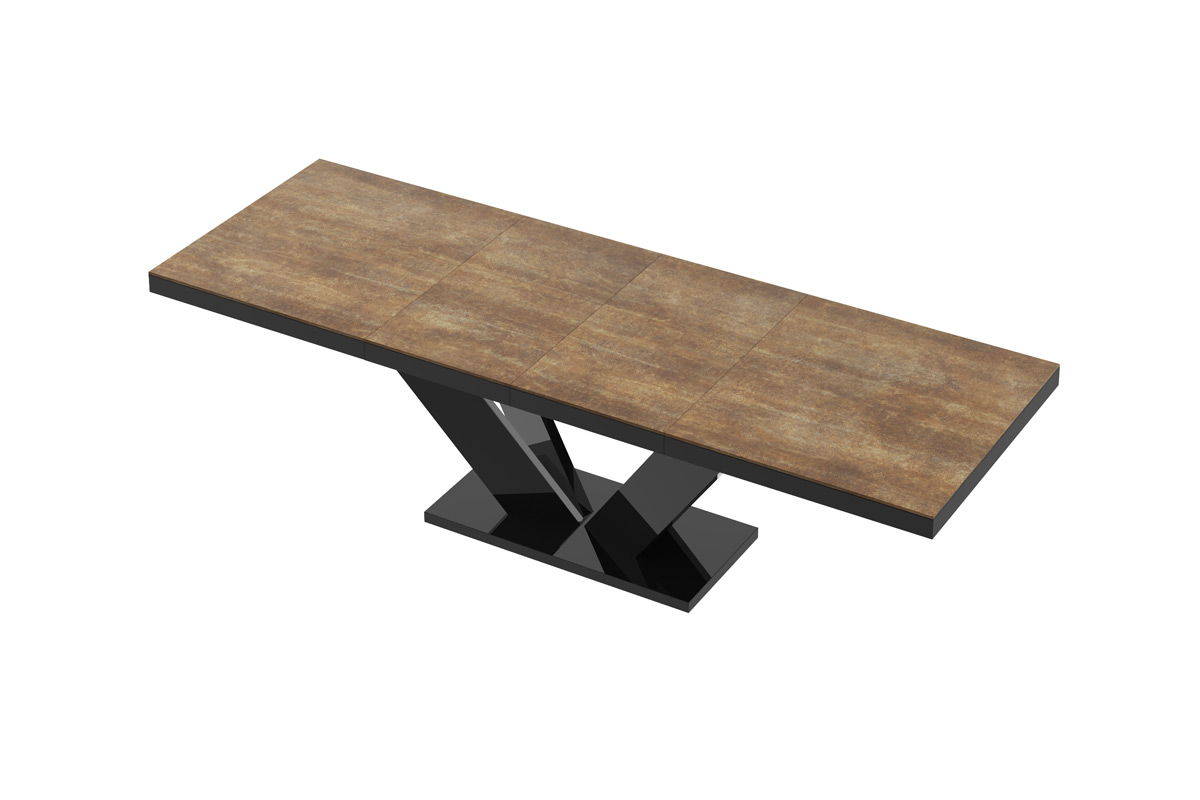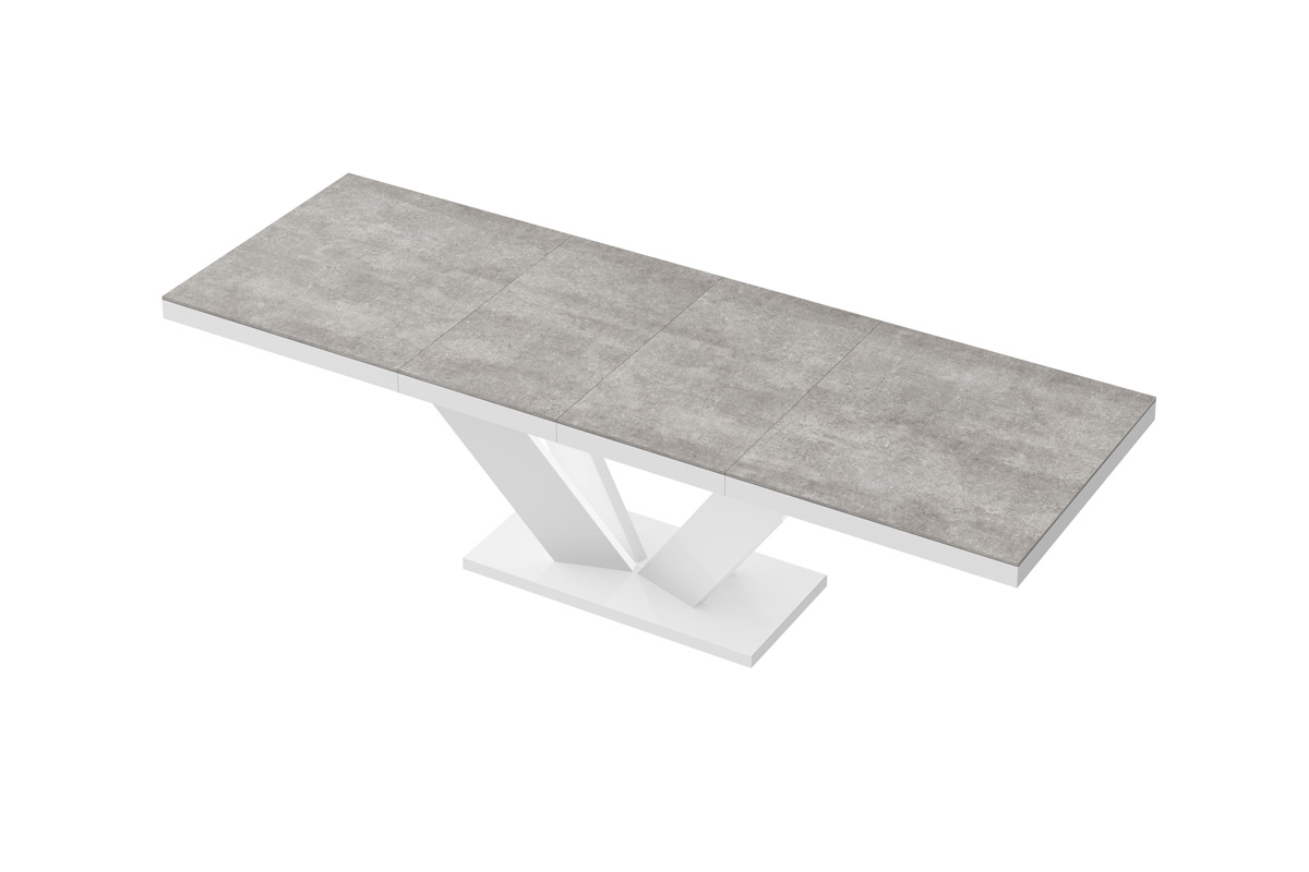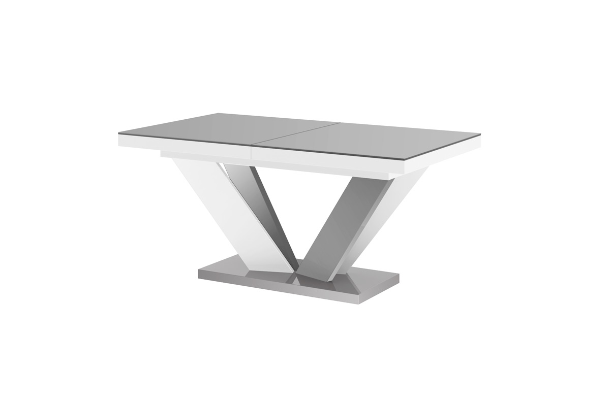 Stół VIVA 2 to oryginalny i niezwykle elegancki projekt firmy Hubertus. Wyróżnia go niespotykany design (podstawa stołu w kształcie delikatnych, prostokątnych czterech nóg ułożonych w kształt liter V) oraz funkcjonalność (rozkładany blat z miejscem do przechowywania dodatkowych wkładek pod blatem).