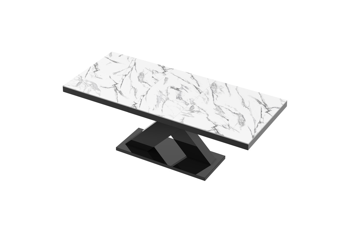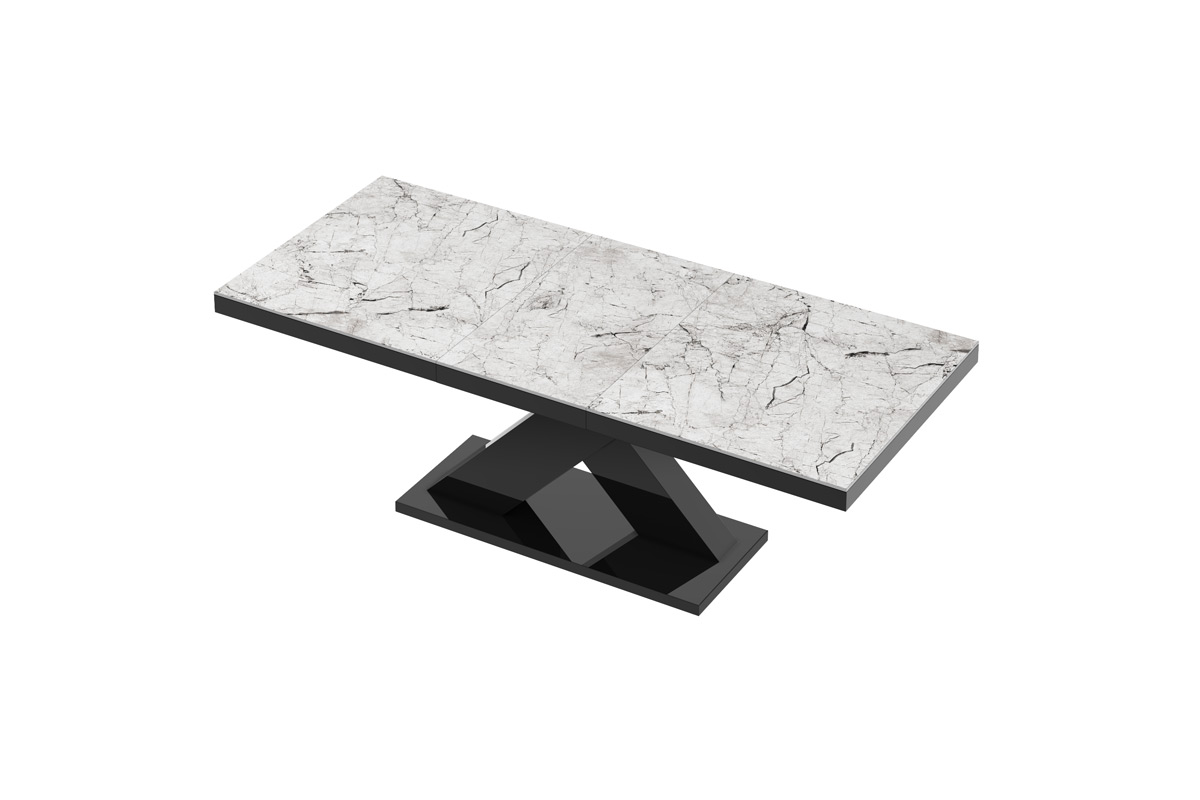 Stół do jadalni rozkładany prostokątny blat czarny marmur na dwóch masywnych nogach