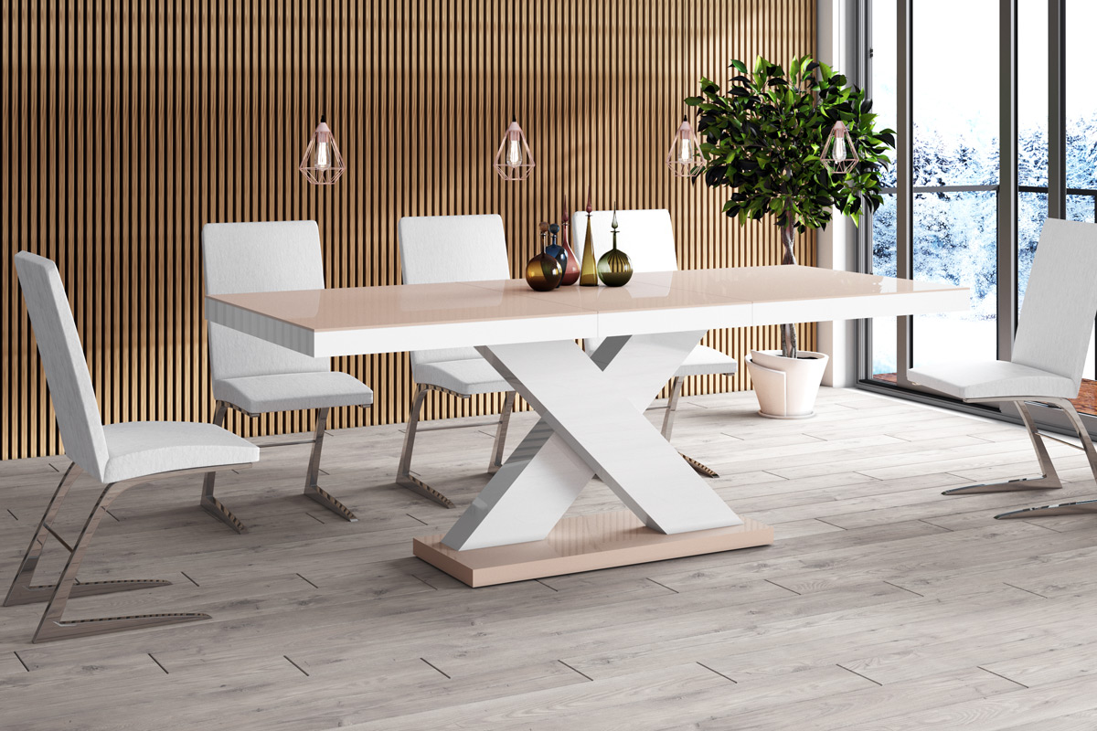 XENON 140 to duży stół, który kapitalnie sprawdzi się w wielu aranżacjach! To nowoczesny stół oraz stół glamour od Hubertus Meble, który natychmiast zachwyca swoim unikatowym wyglądem ze względu na podstawę w kształcie litery X.