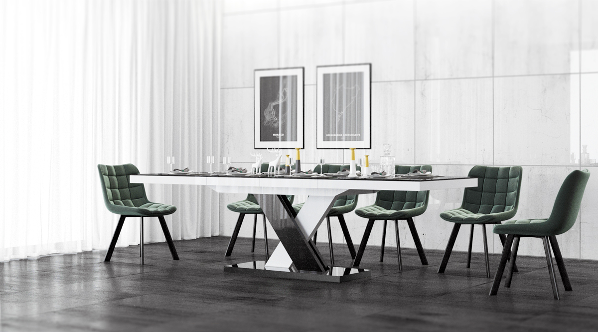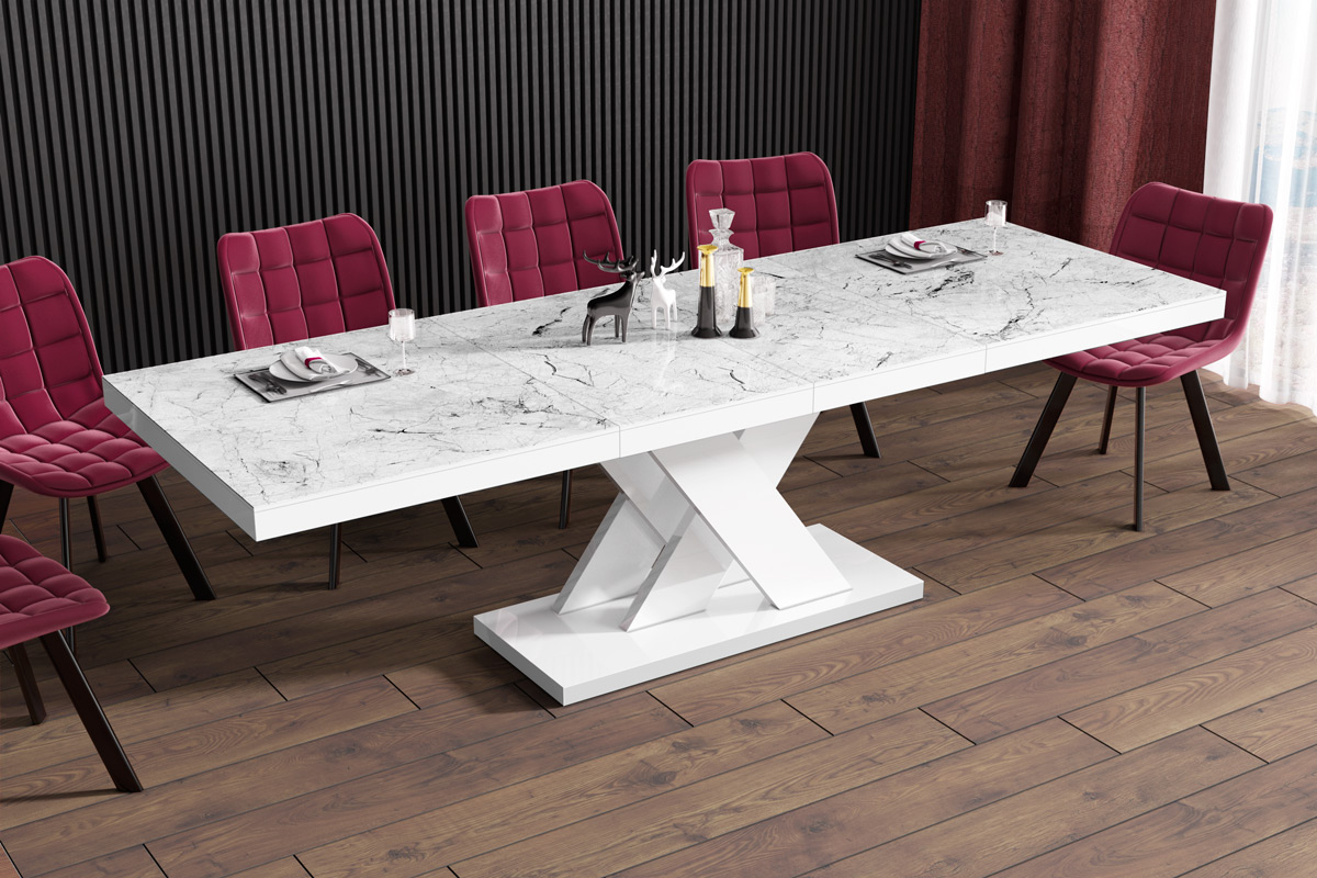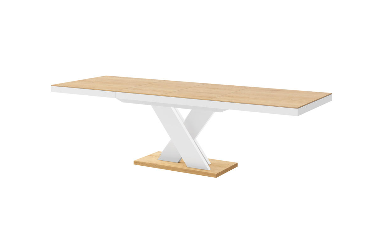 ​Stół Xenon LUX to oryginalny i niezwykle elegancki projekt firmy Hubertus. Wyróżnia go niespotykany design (podstawa stołu to dwie pary nóg w kształcie liter X) oraz funkcjonalność (rozkładany blat z miejscem do przechowywania dwóch dodatkowych wkładek pod blatem). Konstrukcja stołu, w przeciwieństwie do klasycznego modelu z czterema nogami, jest niezwykle stabilna i pozwala na swobodne usytuowanie większej liczby użytkowników. Wpasowując się w nowoczesne trendy blat stołu został pogrubiony.
