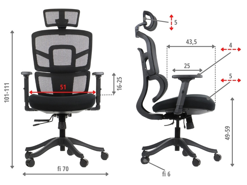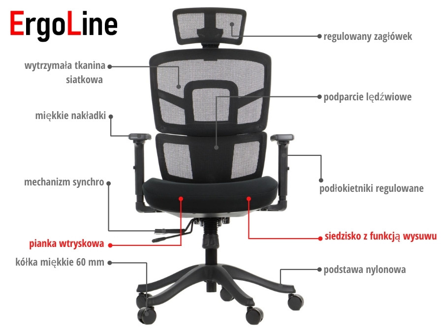 • oparcie tapicerowane tkaniną siatkową