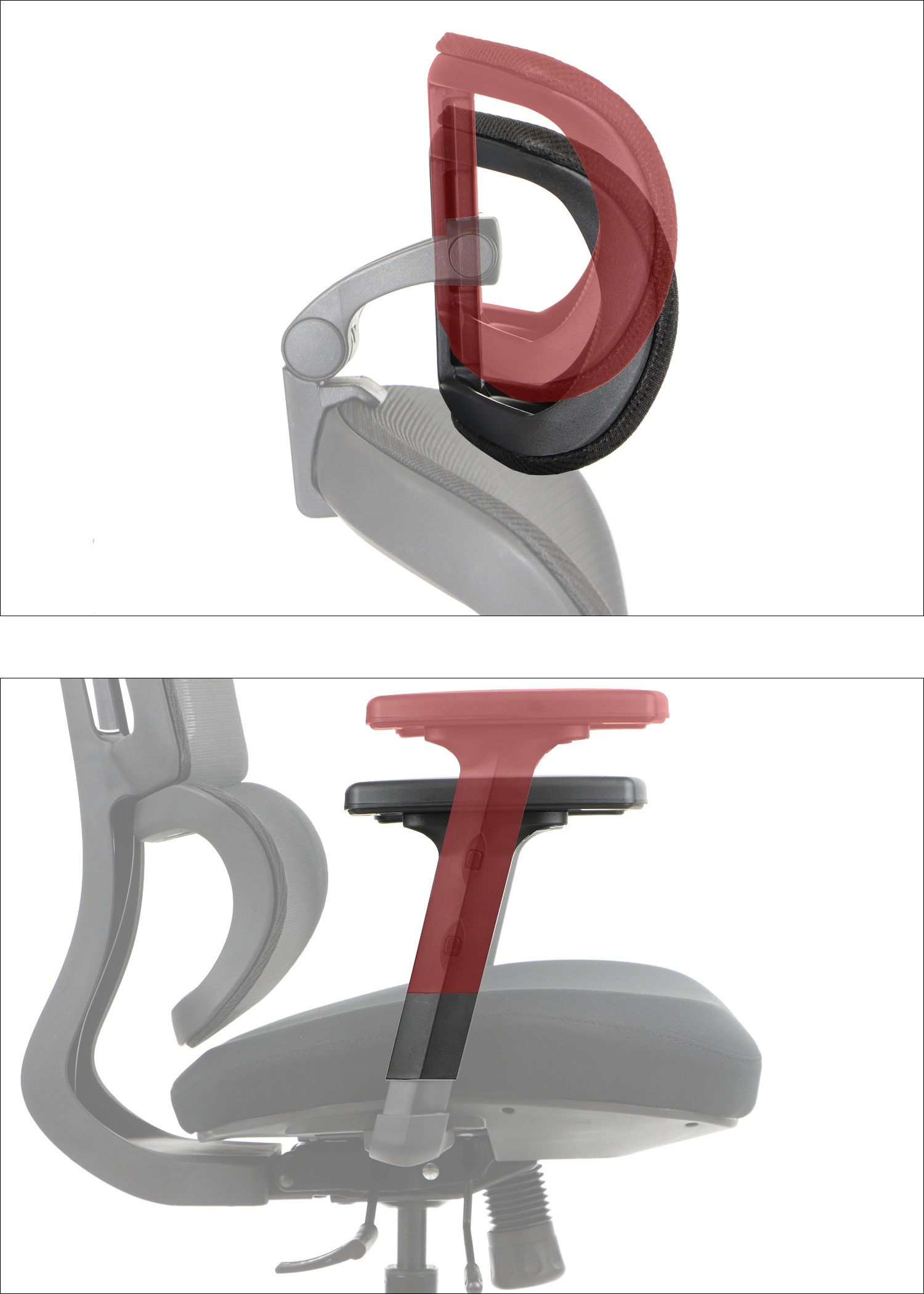 • regulowane 2D (góra-dół, przód-tył) z miękkimi (poliuretanowymi) nakładkami