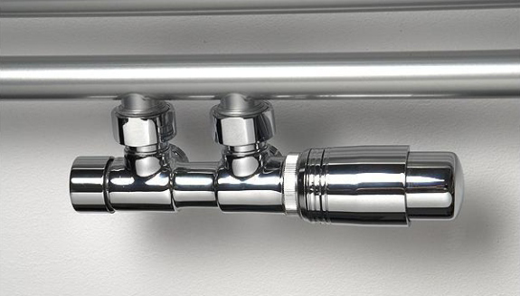Zawór termostatyczny TWINS – komplet z głowicą, rozstaw osi 50 mm. Estetyczne wzornictwo retro i niezawodność.