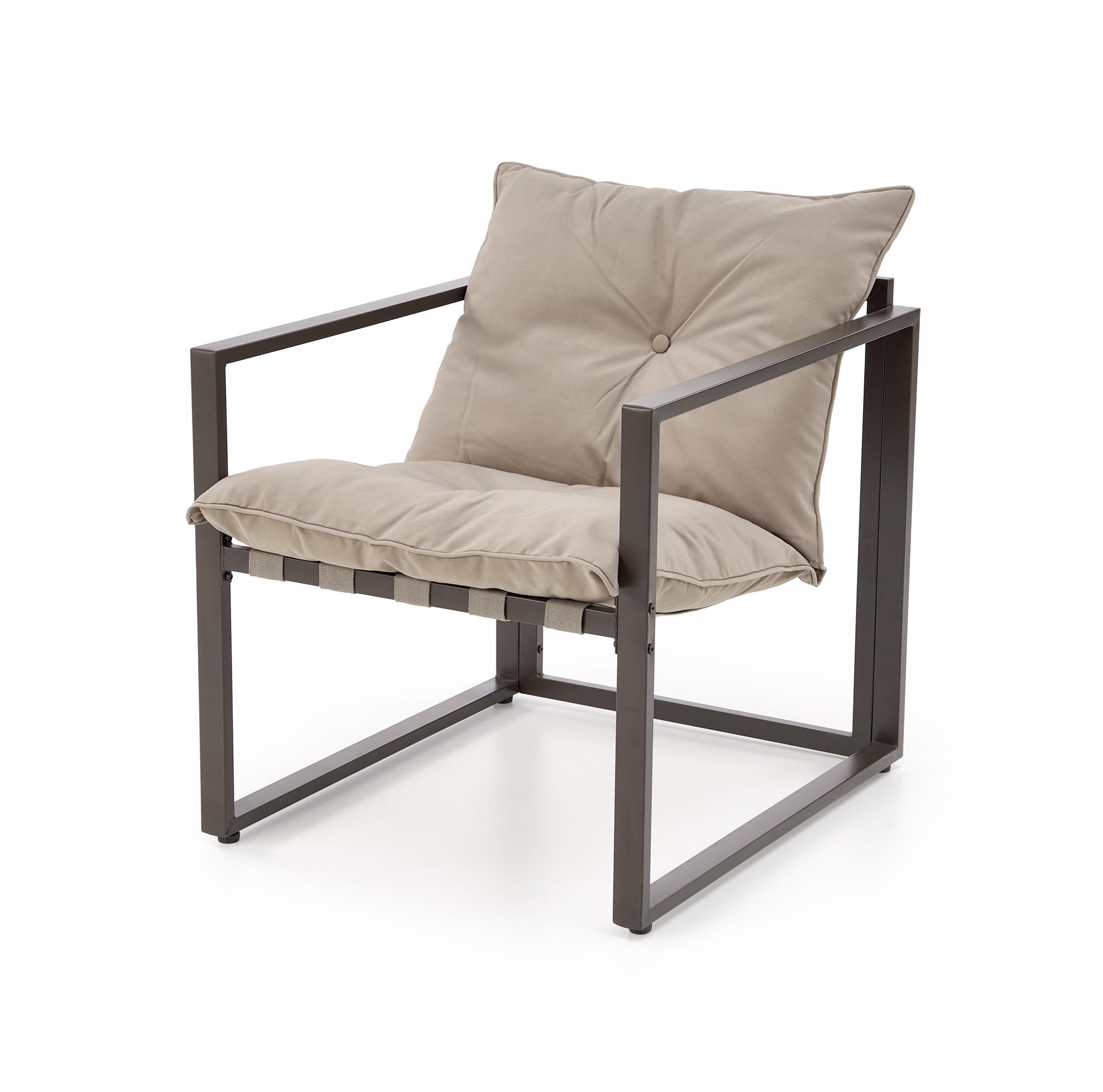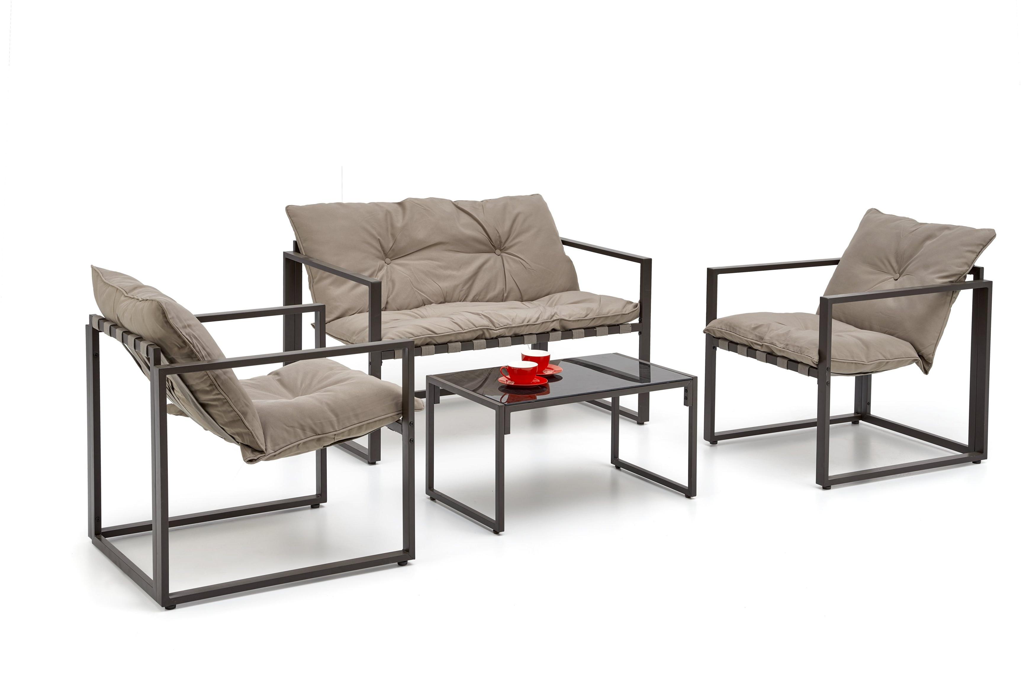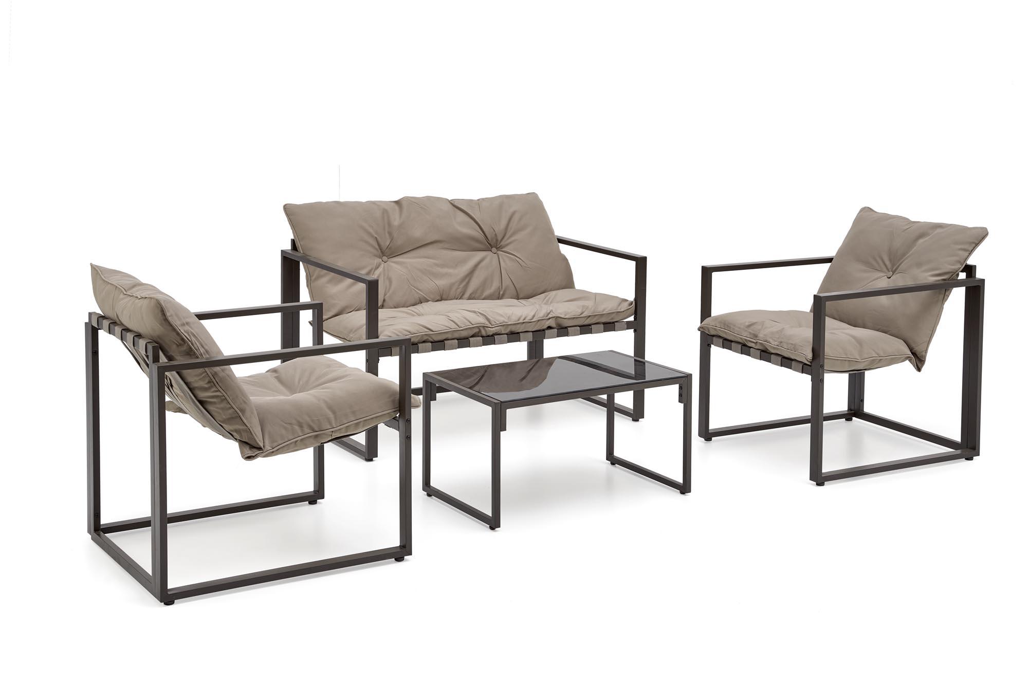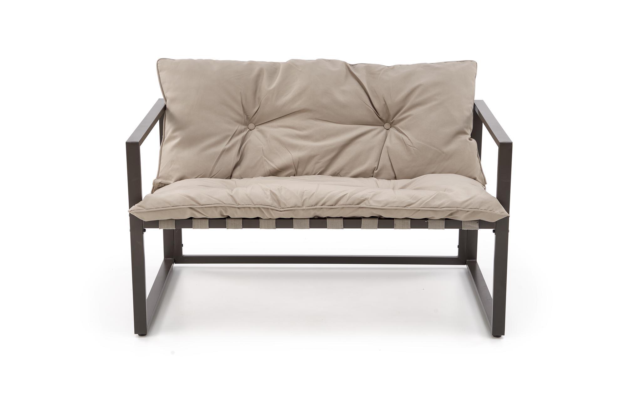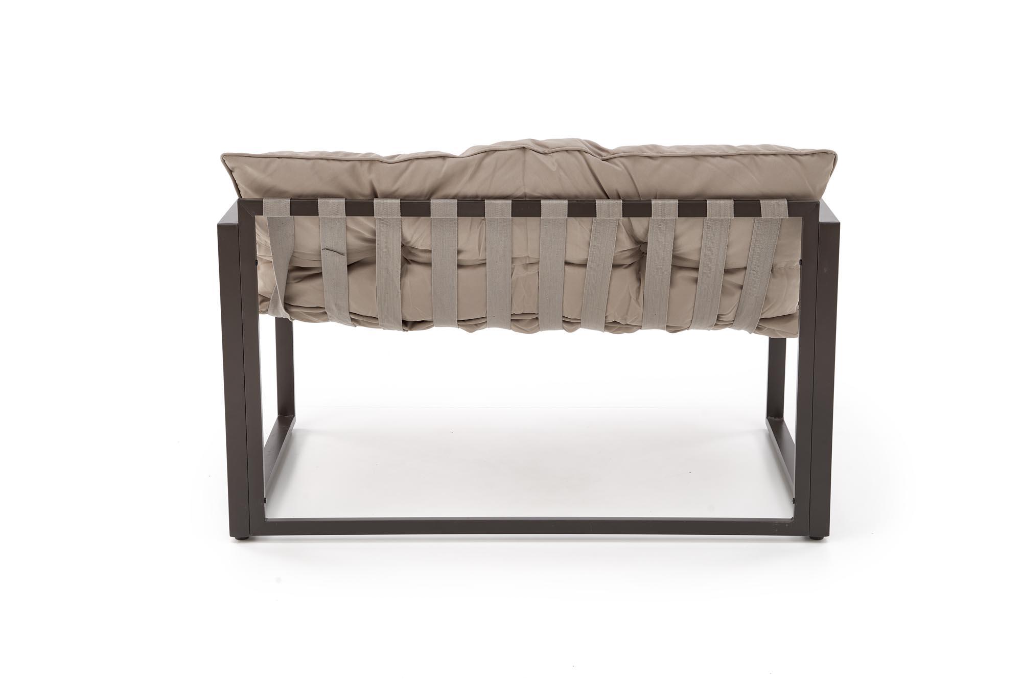 Wykonano z materiału: stal malowana proszkowo / szkło / tkanina, kolor ciemny brąz - cappuccino