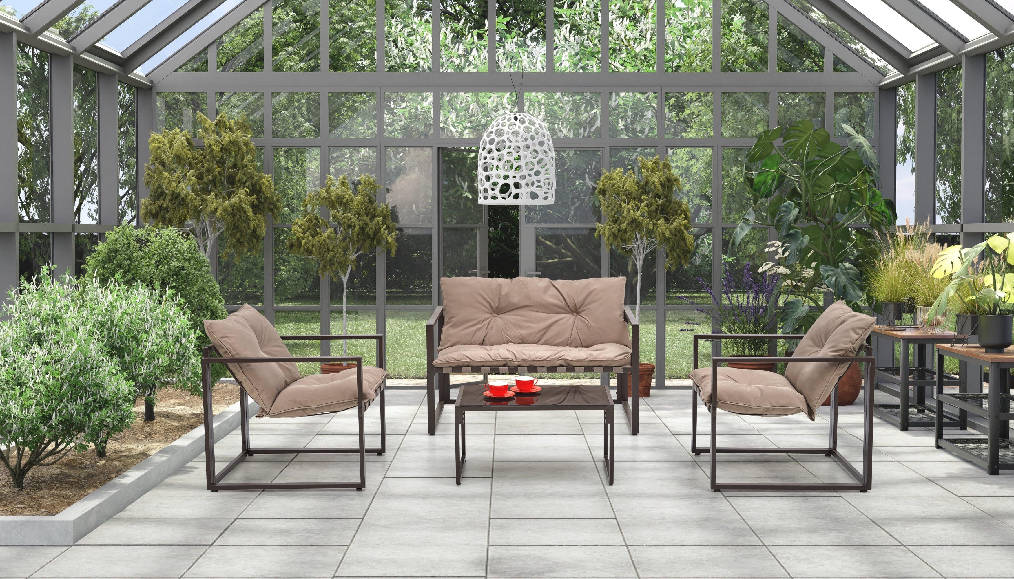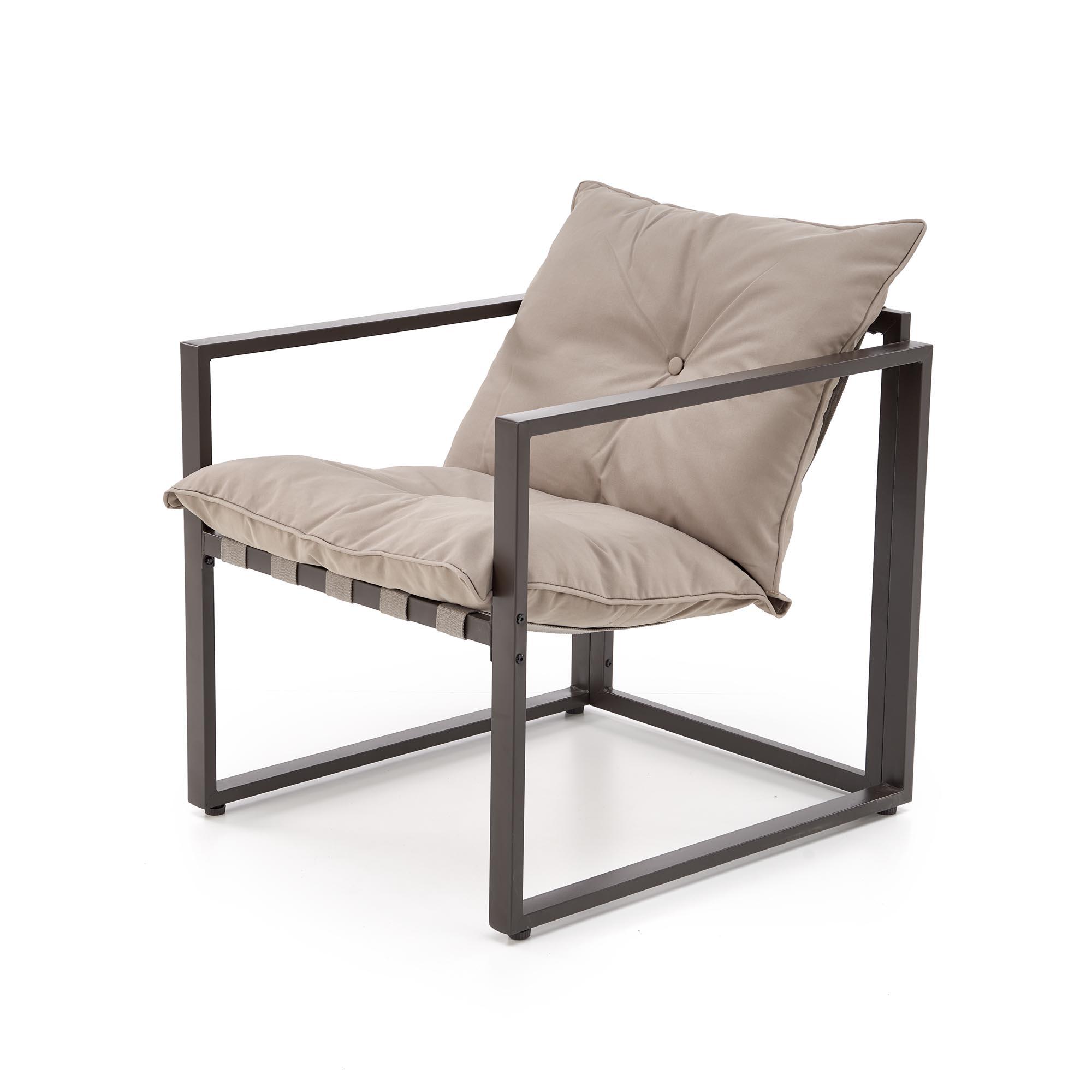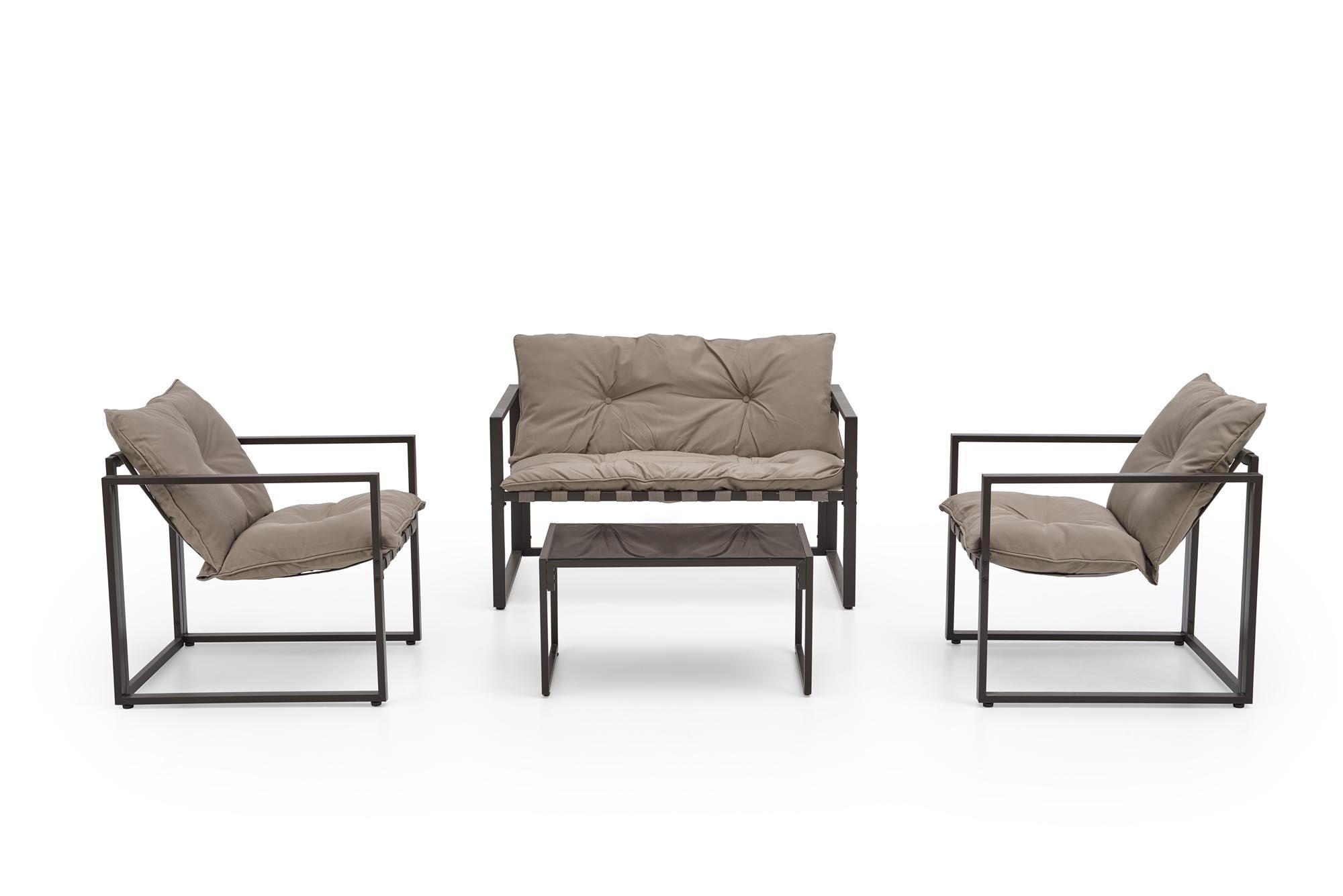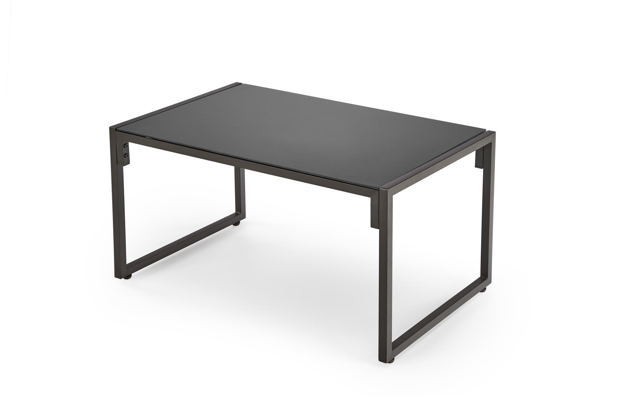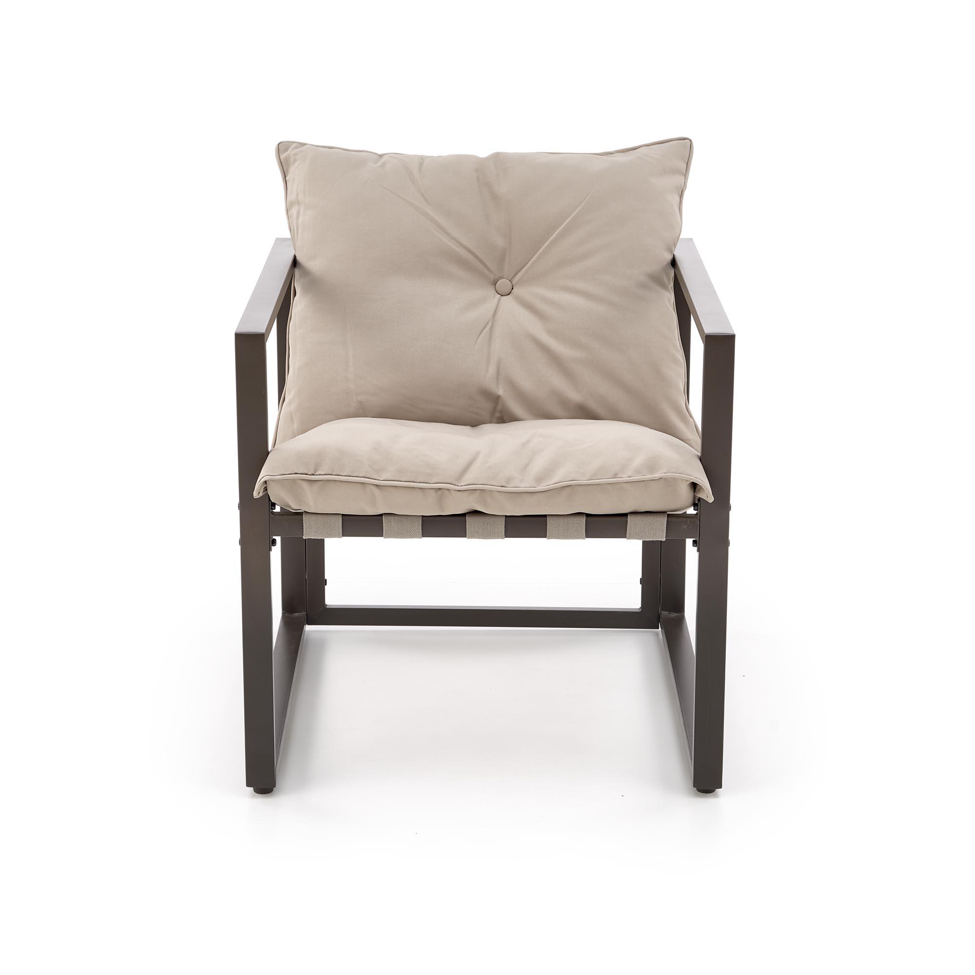 Wykonano z materiału: stal malowana proszkowo / szkło / tkanina, kolor ciemny brąz - cappuccino
